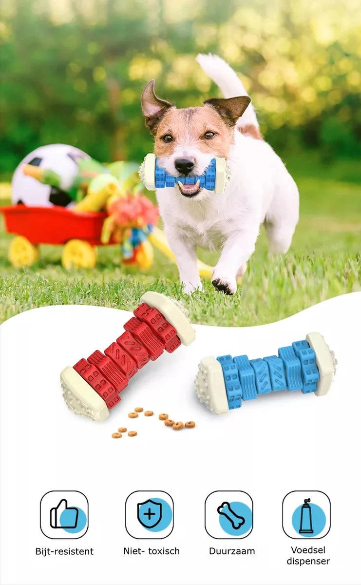Voed, train en verzorg je hond op een speelsgewijze met de 3-in-1 Hondenkauwbot.