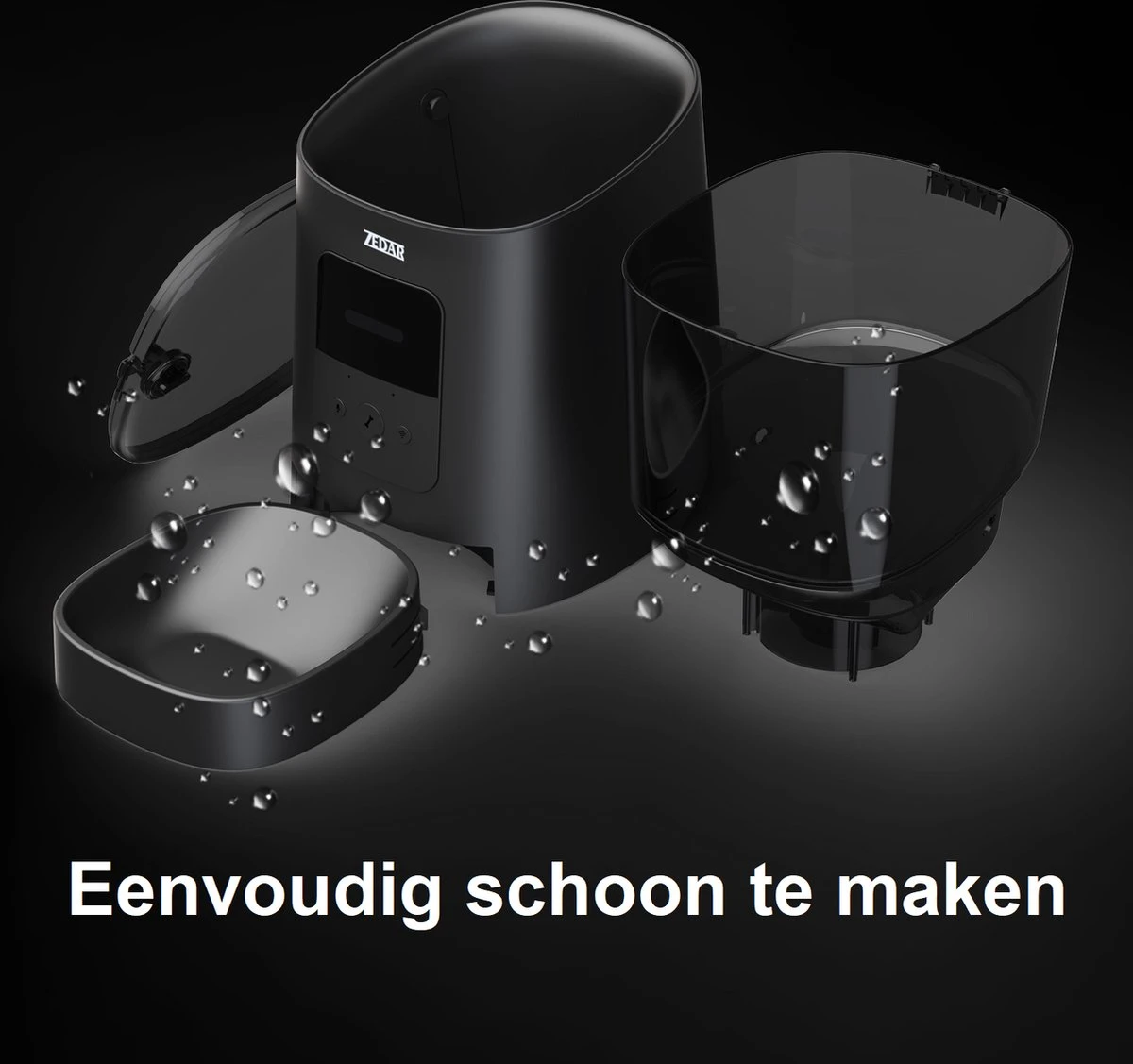 De automatische voerbak van Zedar beschikt over een capaciteit van maar liefst 6 liter. Het wordt luchtdicht afgesloten waardoor de brokjes zijn smaak en knapperigheid behouden. Daarnaast kan uw huisdier de bak zelf niet openen waardoor het veilig ligt opgeborgen.