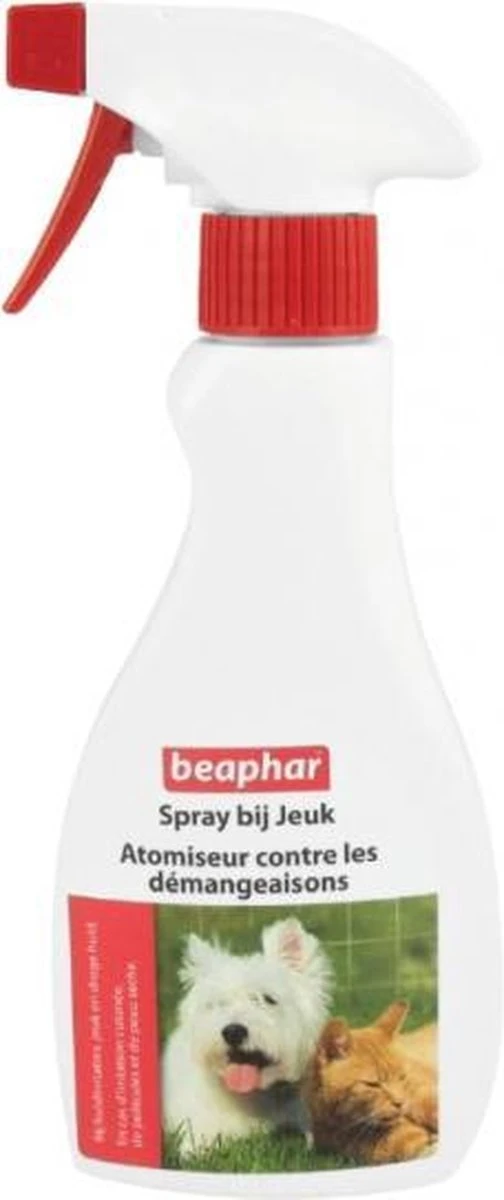 Beaphar Spray bij Jeuk voor honden en katten is een mild huidverzorgingsproduct. Te gebruiken bij huidirritaties, roos of een droge huid. De combinatie van onder andere Aloë Vera, Teunisbloemolie en Castor-olie verzacht de gevoelige huid en houdt deze zacht en soepel. De spray hydrateert en ondersteunt het herstel van de huid.