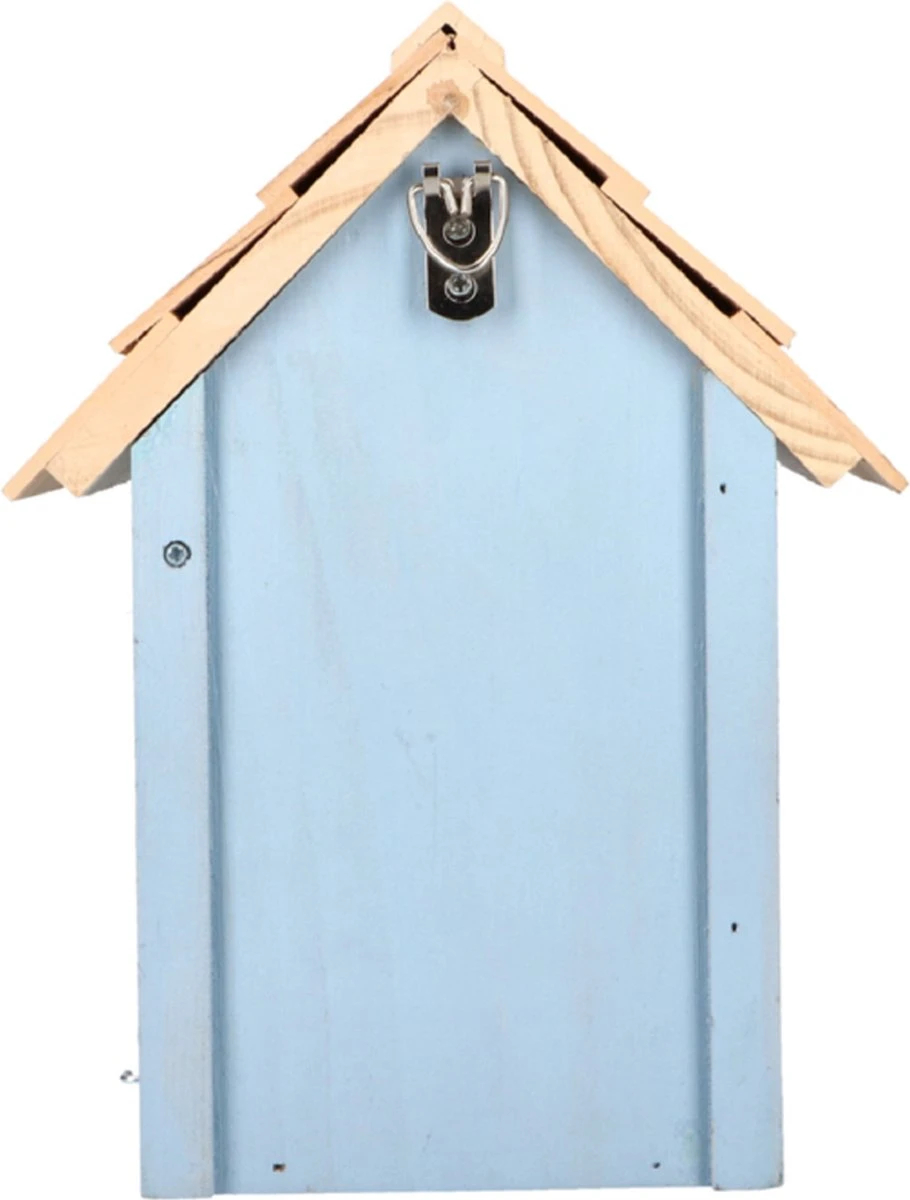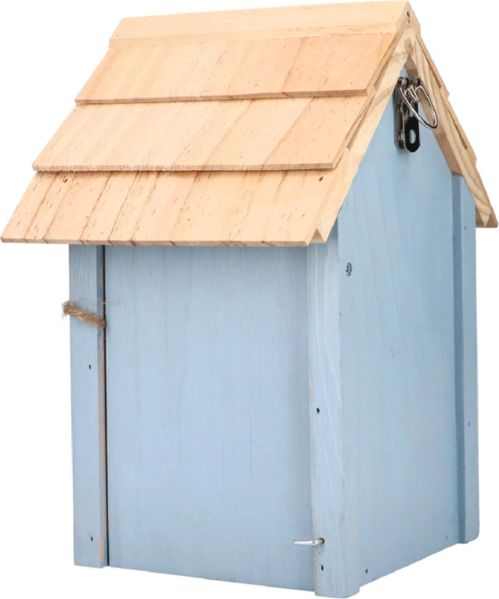 FSC hout met een 32 mm diameter doorgang. Makkelijk op te hangen aan boom of muur en aan de zijkant te openen om eenvoudig schoon te maken. Geschikt voor vele soorten vogels oa boomklevers, mussen en koolmeesjes.