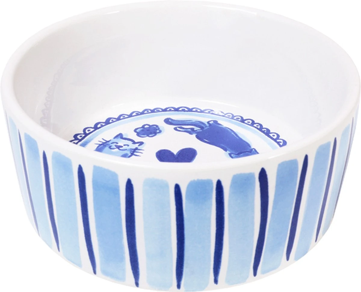 Onze blauw-witte Delfst Blond collectie is uitgebreid! Maak je verzameling af met deze leuke nieuwe items of begin met sparen nu er nog meer items bij zijn gekomen van deze Hollandse collectie.Met onder andere deze leuke voerbak voor je kat om bijvoorbeeld cadeau te geven voor Dierendag. Op de voerbak zijn aan de binnenkant verschillende katten geïllustreerd. De buitenkant is volledig gevuld met een wit-blauw gestreept motiefje. Combineer deze voerbak nu met de andere 13 nieuwe Delfts Blond items of met de huidige items uit de collectie.