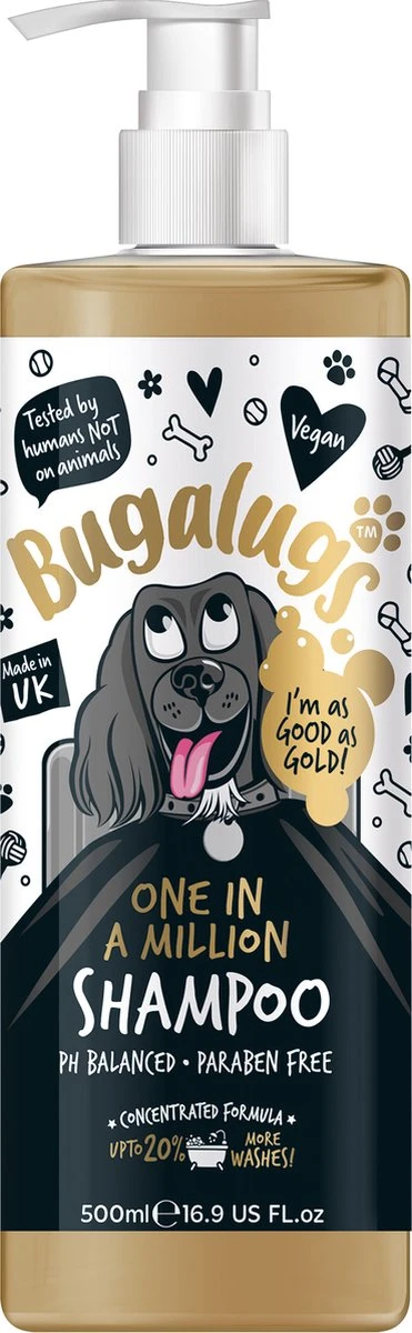 Deze hondenshampoo heeft een heerlijke geur geïnspireerd op de bekende One Million parfum en is ideaal voor het verwijderen van puppy- en hondengeuren. De shampoo reinigt diep, maar irriteert de huid niet. Na gebruik zal de vacht van je hond weer schoon en zacht aanvoelen. Daarnaast ruikt de shampoo heerlijk en je viervoeter zal dus langdurig fris blijven ruiken. De schuimende shampoo zit boordevol natuurlijke essentiële oliën, sinaasappel, citroen en nootmuskaat die de geïrriteerde huid helpen te kalmeren. Deze 3-in-1 werking reinigt, verzorgt en hydrateert de vacht van jouw hond. De shampoo is zeer geconcentreerd, waardoor je er niet veel van nodig hebt, hierdoor haal je uit deze fles hondenshampoo tot wel 20% meer wasbeurten! De PH neutrale shampoo is geschikt voor alle honden vanaf 8 weken en is geschikt voor alle vachttypes. De shampoo komt in een 500 ml fles met pompje.