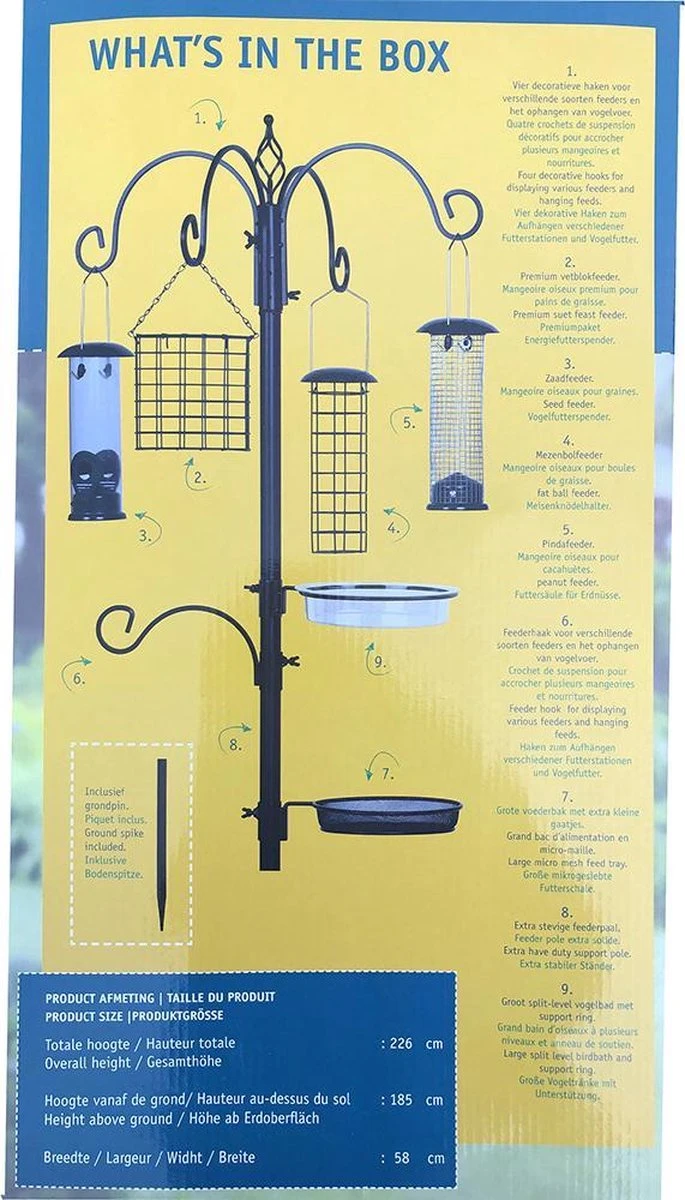 De feeder paal meet 185cm lang, en is makkelijk in elkaar te zetten.