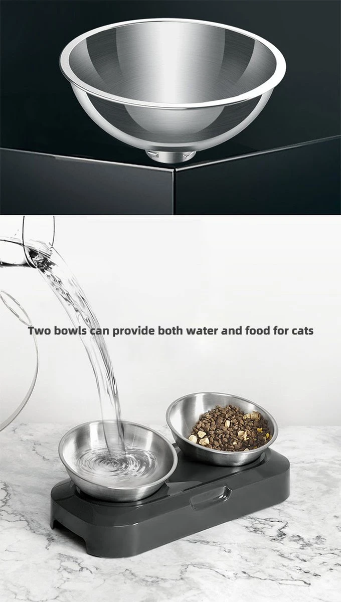 De dubbele voerbak is anti-overloop en gemaakt van hoogwaardig roestvrij staal zonder coating, zodat deze geen smaak afgeeft en de huisdieren er veilig uit kunnen eten. Roestvrijstaal is daarnaast zeer hygiënisch en de afneembare eetbakjes zijn gemakkelijk schoon te maken. De onderkant is voorzien van antislip zodat de voerbak niet alle kanten opschuift wanneer de kat of hond aan het eten is.