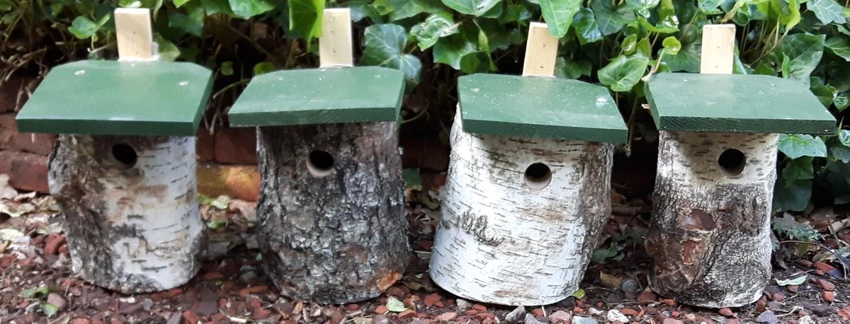 Deze nestkast is gemaakt van een stuk uitgeholde berkenstam. Er zit een vlieggat in van 32mm, geschikt voor o.a. koolmezen. Het groene dakje kan eraf geschroefd worden om de nestkast schoon te maken. Deze nestkast is gemaakt van natuurlijke materialen, daardoor kunnen de afmetingen verschillen. Maar elke nestkast heeft een holte geschikt voor o.a. koolmezen.