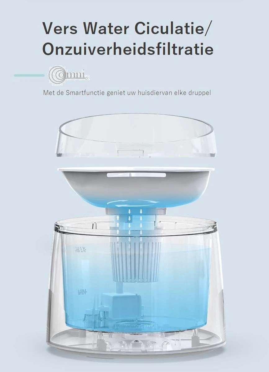 En dankzij de smart functie is er altijd een vers water circulatie en tevens worden de onzuiverheden gefiltreerd, zo kan uw kat of hond optimaal genieten van elke druppel water.