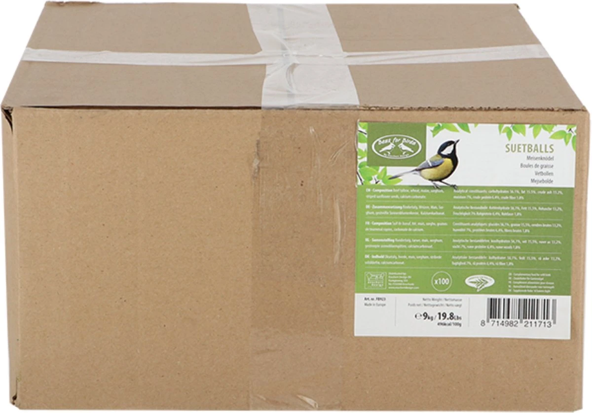Met deze vetbollen verwent u de vogels in de tuin! Door de samenstelling zijn ze de optimale aanvulling op het natuurlijke voer tijdens de winterdagen. Naast vetten, zitten ze namelijk ook boordevol koolhydraten. Daar zullen de vogels zeker op af komen, waardoor u kunt genieten van een levendige tuin. Met deze grote doos van 100 stuks, kunnen de vogels de hele winter door genieten van wat extra’s!