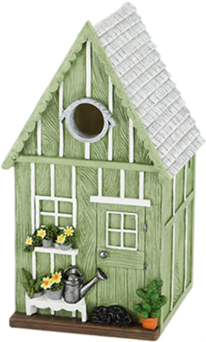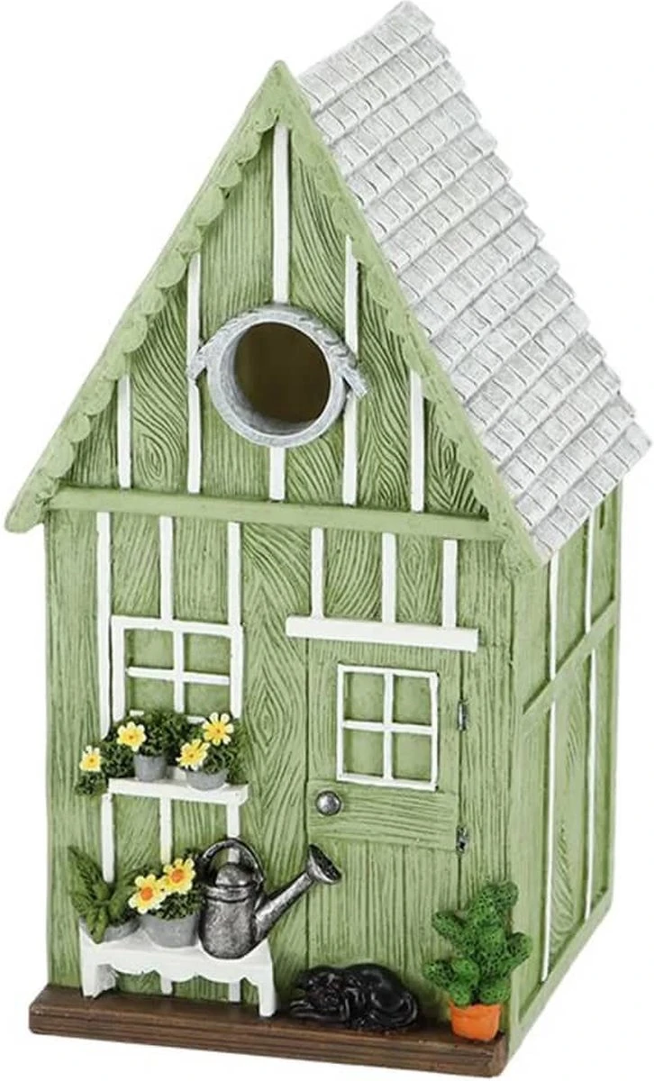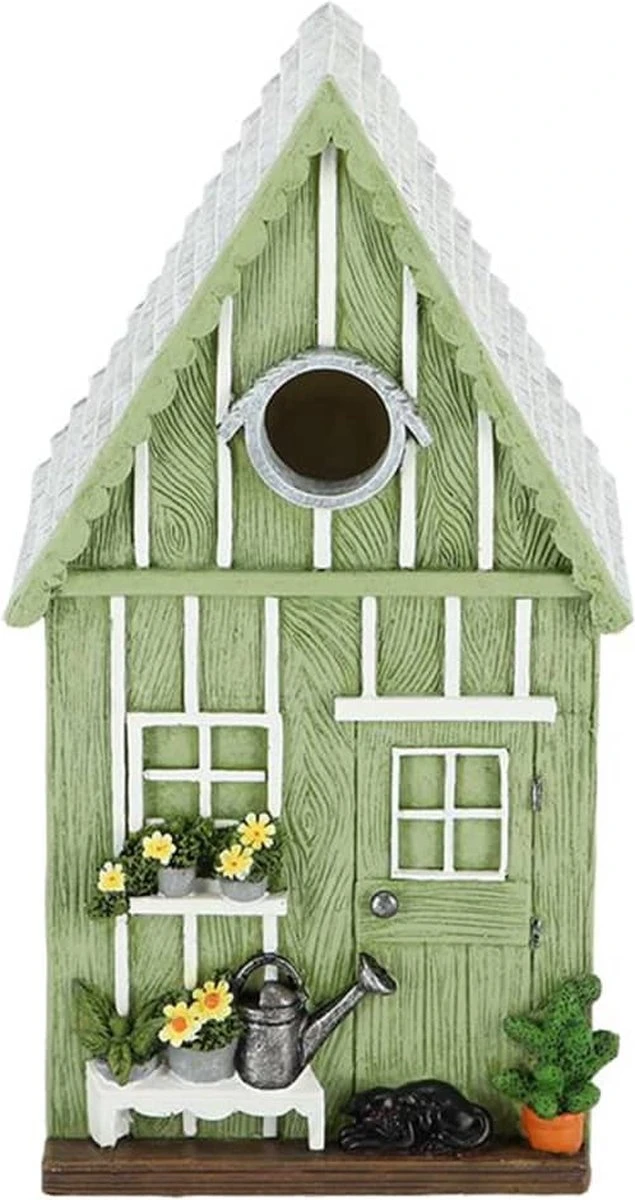 Dit leuke ouderwetse tuinhuisje is perfect om cadeau te geven! Want naast dat je met dit vogelhuisje wat goeds doet voor de vogels, haal je ook een erg leuk sfeerartikel in huis. Dit vogelhuisje heeft het ontwerp van een klassiek tuinhuisje, zoals we deze van vroeger kennen. Hoe leuk is het dan om met dit leuke huisje een knipoog naar vroeger op te hangen? Het huisje is gemaakt van weersbestendig polyresin. Daarnaast is het huisje voorzien van ventilatiegaten onder het dak en gemakkelijk op te hangen door het ophangoog aan de achterzijde. Ze worden geleverd in een geschenkverpakking, waardoor ze extra makkelijk in te pakken zijn om vervolgens cadeau te geven. Het gedetailleerde vogelhuisje is vanwege zijn maatvoering en invliegopening van 27 mm perfect voor veel verschillende vogelsoorten. U kunt in dit vogelhuisje de pimpelmees, kuifmees, zwarte mees glanskop en matkop verwachten. De afmeting van dit tuinhuisje is circa 13,9 x 13,4 x 25,1 centimeter (lxbxh).