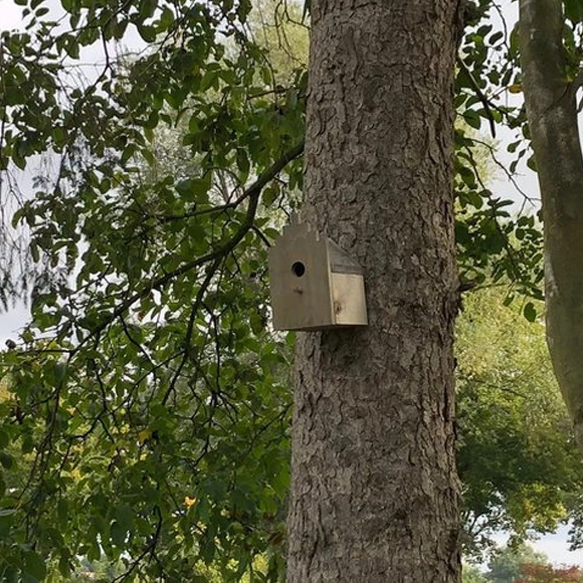 - Hang de Nestkast tenminste 2 meter hoog aan de noord- noordoostzijde van een boom, schutting of schuur. Zo Zorg je ervoor dat hij uit de wind, regen en zon hangt