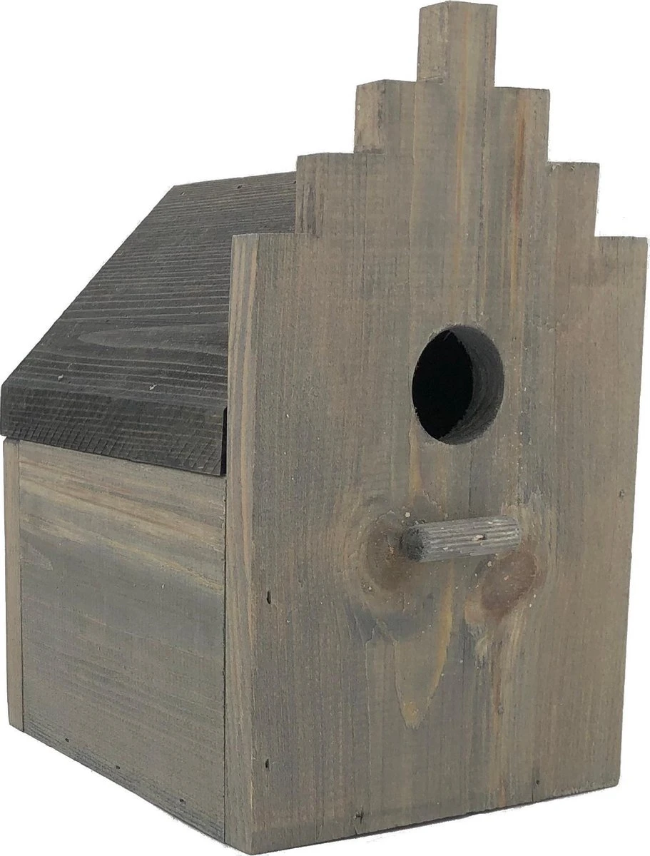 Deze mooi ontworpen Garden Spirit Vogelhuisje Amsterdam Grachtenpand heeft de afmetingen van 15x13x22,5 cm. De Nestkast heeft een vliegingang van Ø 28 mm. Deze Nestkast Vogelhuis is geschilderd in een grijze washing met een zwart dakje.