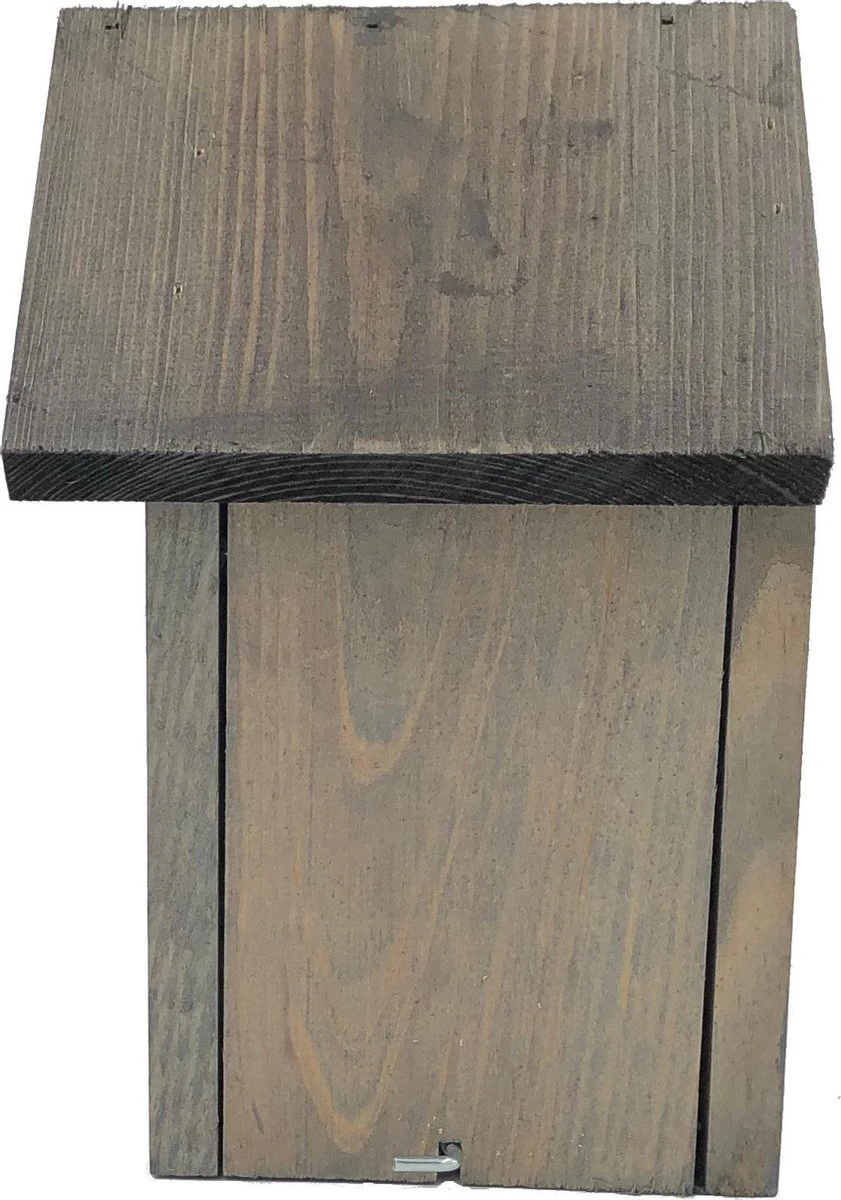 - Aan de zijde zit een luikje waardoor het oude nestje verwijderd kan worden om zo het Vogelhuis van binnen schoon te maken.