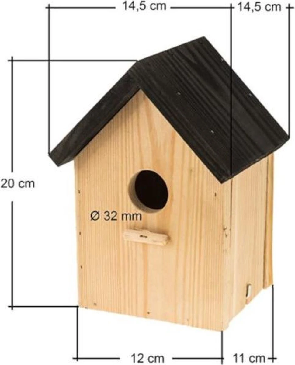 - Dit Vogelhuis is geschikt voor de kleine vogels als het Koolmeesje, Roodborstje en het Winterkoninkje.