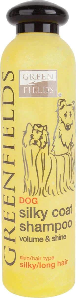 De unieke Silky Coat Shampoo van Greenfields is speciaal geformuleerd voor honden met een langharige vacht. Zijde proteïnen helpen de vacht te versterken aan de binnenkant en brengen de natuurlijke glans terug aan de buitenkant. Verzachtende componenten maken het gemakkelijk om de vacht door te kammen na gebruik.
