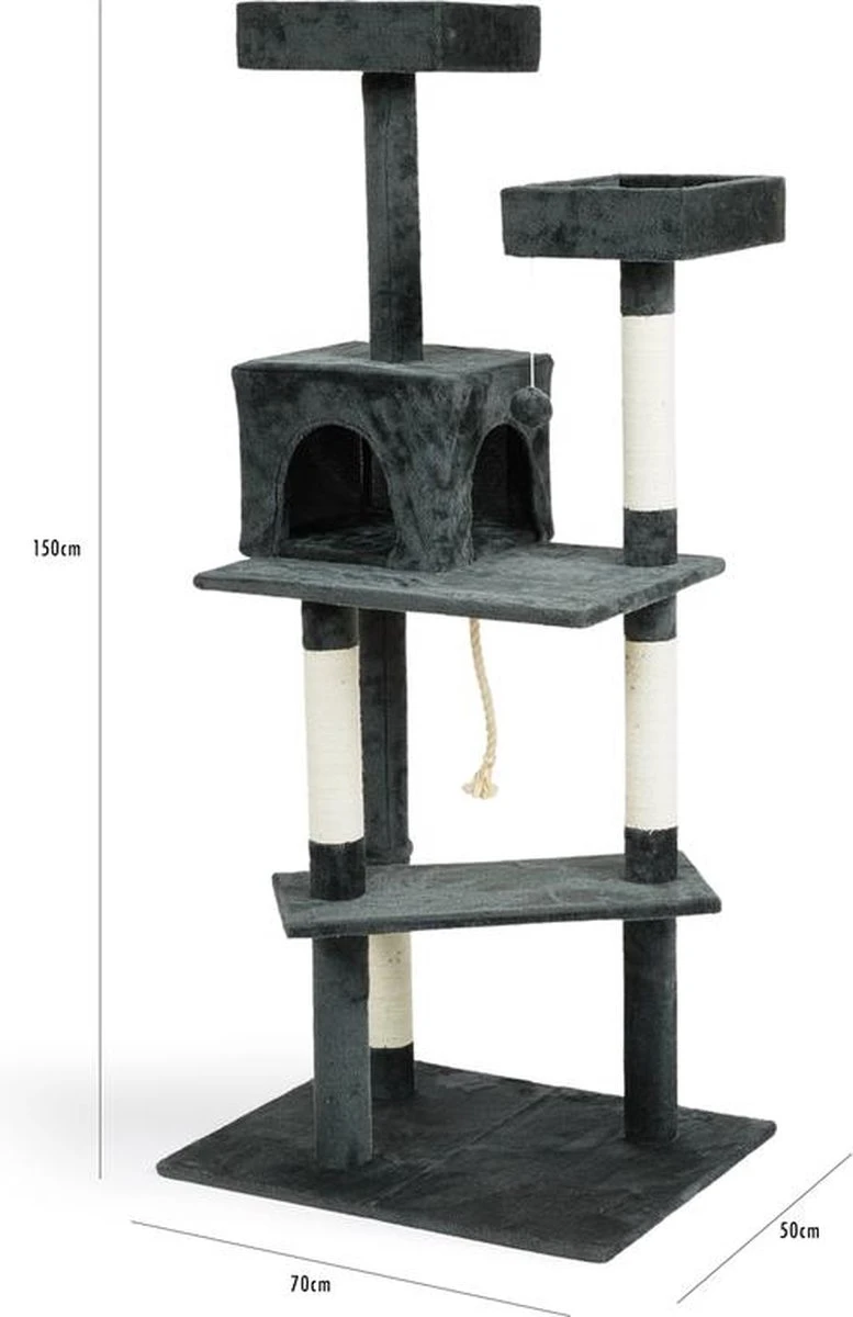 Daarnaast heeft je kat met deze krabpaal genoeg kraboppervlakte, hangende speeltjes, een slaaphuisje en verschillende ligplateau’s. Zo heeft je maatje de hele dag wat te doen met deze complete krabpaal, of het nou gaat om spelen, krabben, verstoppen of slapen.