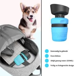 VEDIC® – Honden Drinkfles Blauw – Lekvrije Waterfles – Bidon – BPA Vrij – Voor Onderweg – 520ML