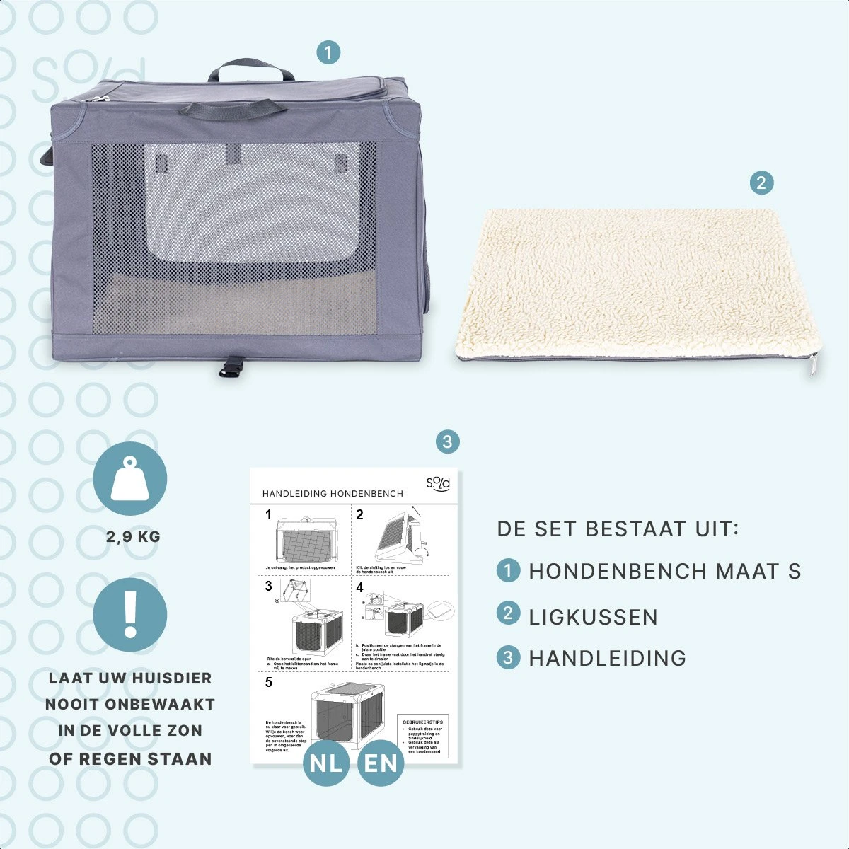 • Gewicht hondenbench: 2900 gram