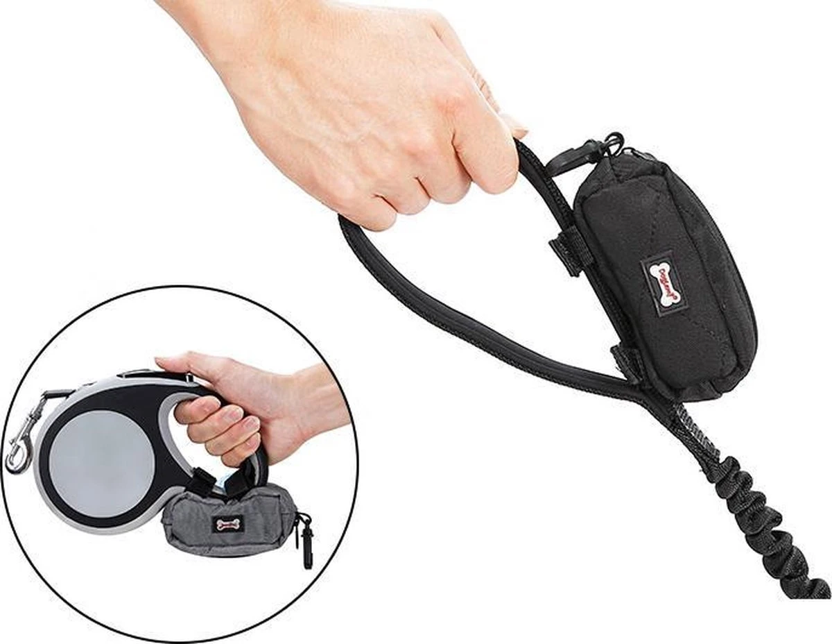 Dit handige tasje is de oplossing voor U.Er kunnen met gemak twee rolletjes poepzakjes in opgeborgen worden en is voorzien van een sluis om de zakjes er één voor één uit te trekken.Discreet , handig en modieus tegelijk.Het tasje kan aan de riem gehangen worden, gewoon meegedragen worden of met velcro strips aan bv de leiband bevestigd worden.Het is dus altijd binnen handbereik en kan op deze manier niet vergeten worden.