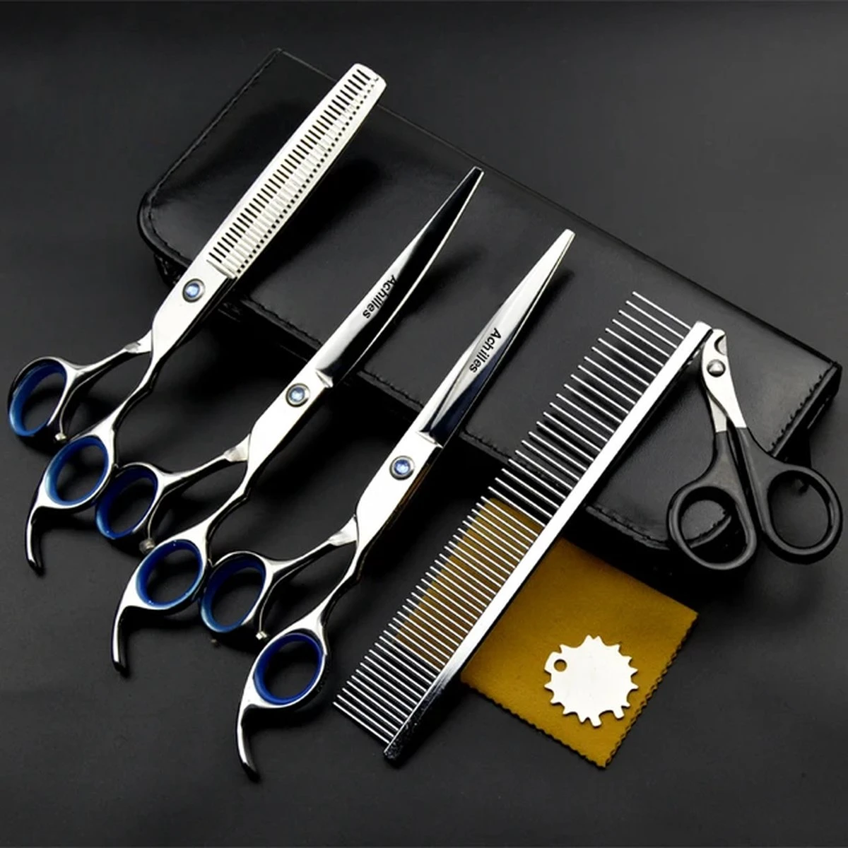 Zijn de haren van uw hond te lang? Wil je je huisdier zelf verzorgen? Dan is de 6-delige scharenset van Achilles de juiste voor u.