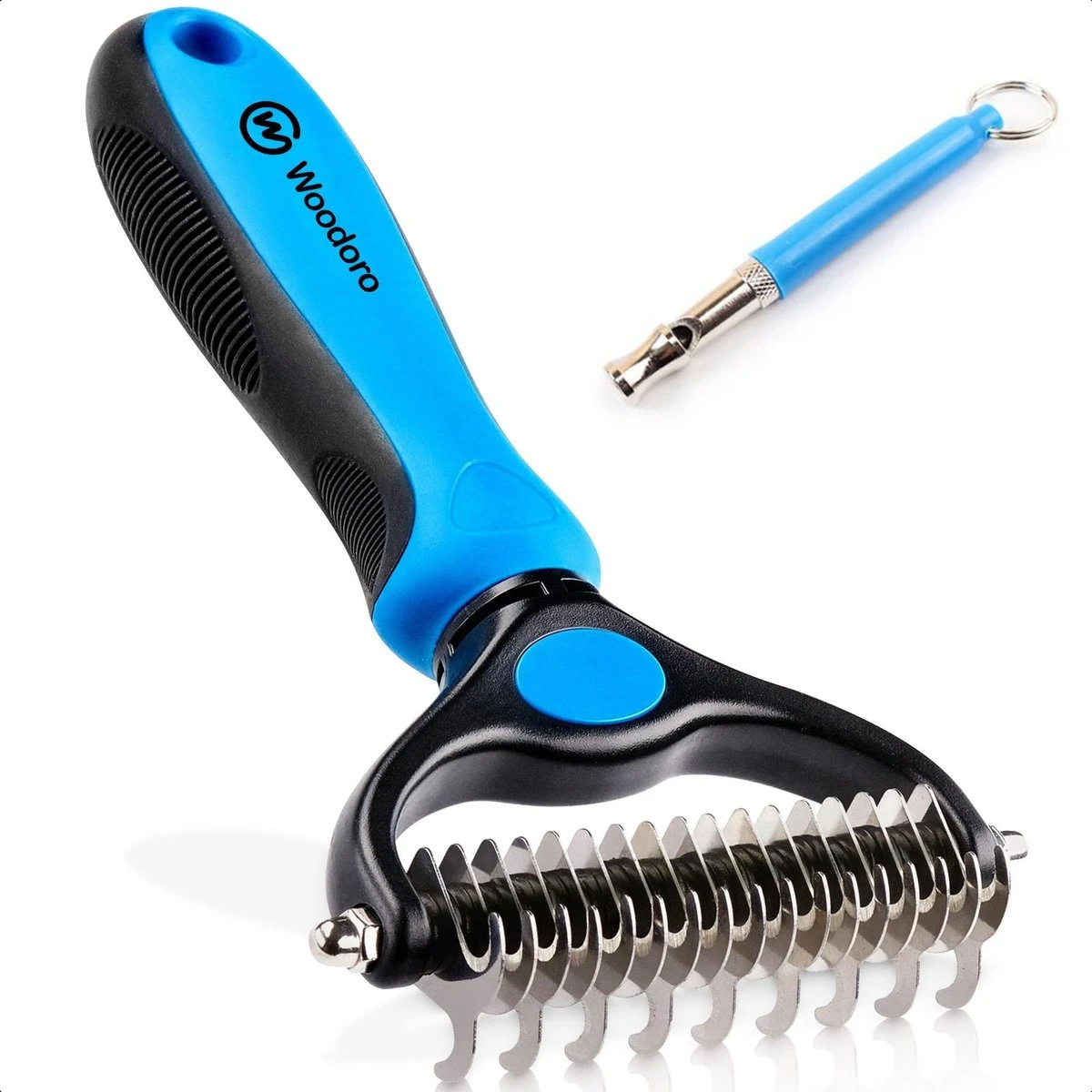 Hoogwaardige 2-Zijdige Hondenkam Hondenborstel Borstel Hond Klittenkam – Ondervacht Kam – Honden Borstel – Honden Kam – Hondenborstel Langharig – Hondenborstel Kortharig – Verwijdert Klitten – Voorkomt Verharing – Blauw – Woodoro