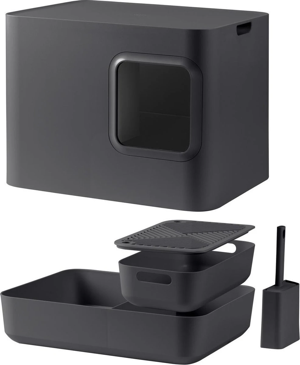 Hoopo® Dome Kattenbak Grijs – Kattenbak – Kattenbakschep – Kattenbakmat