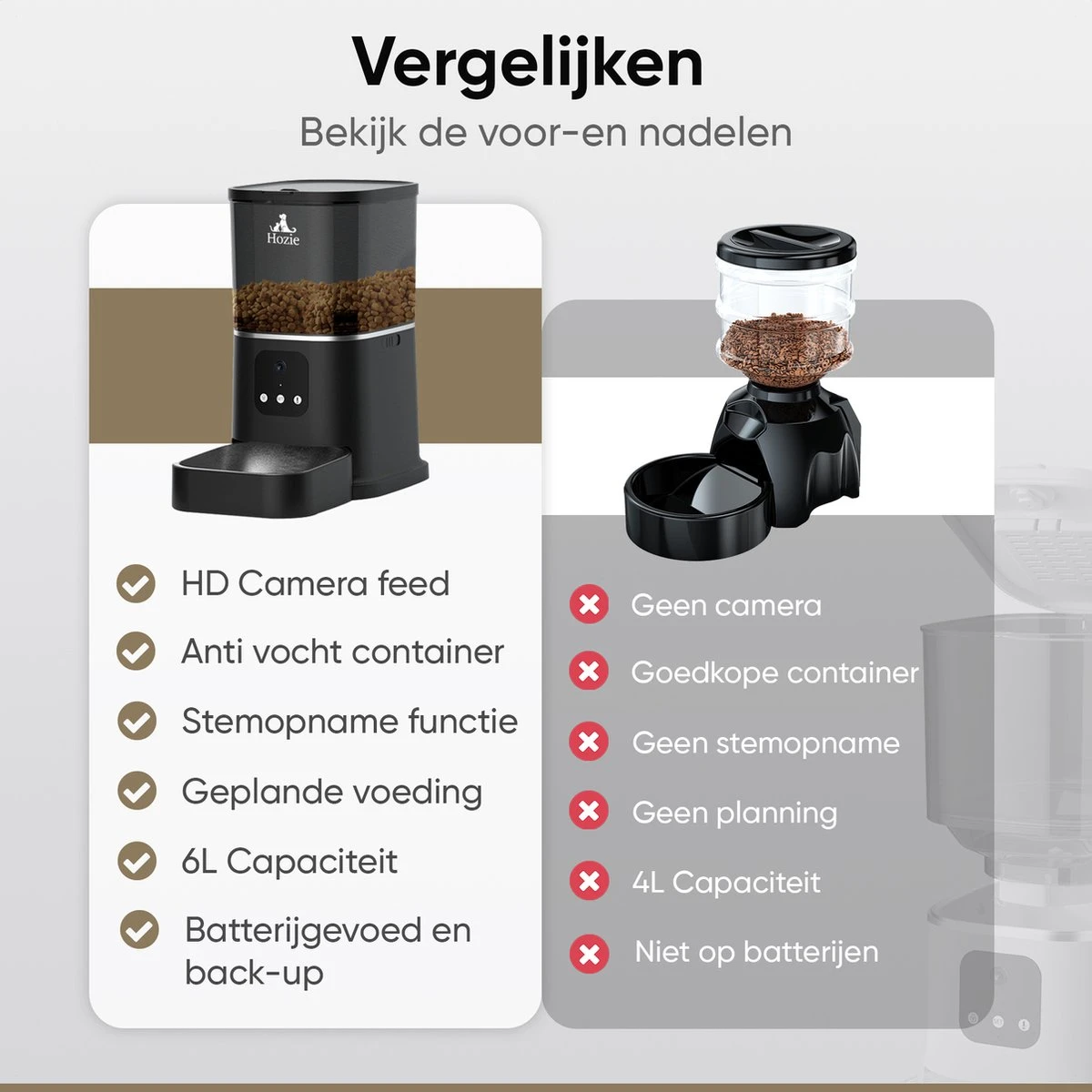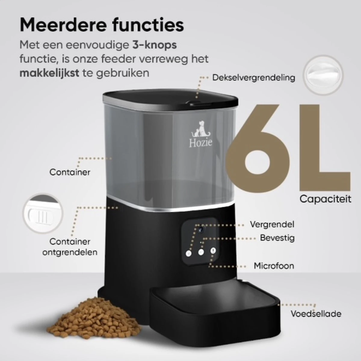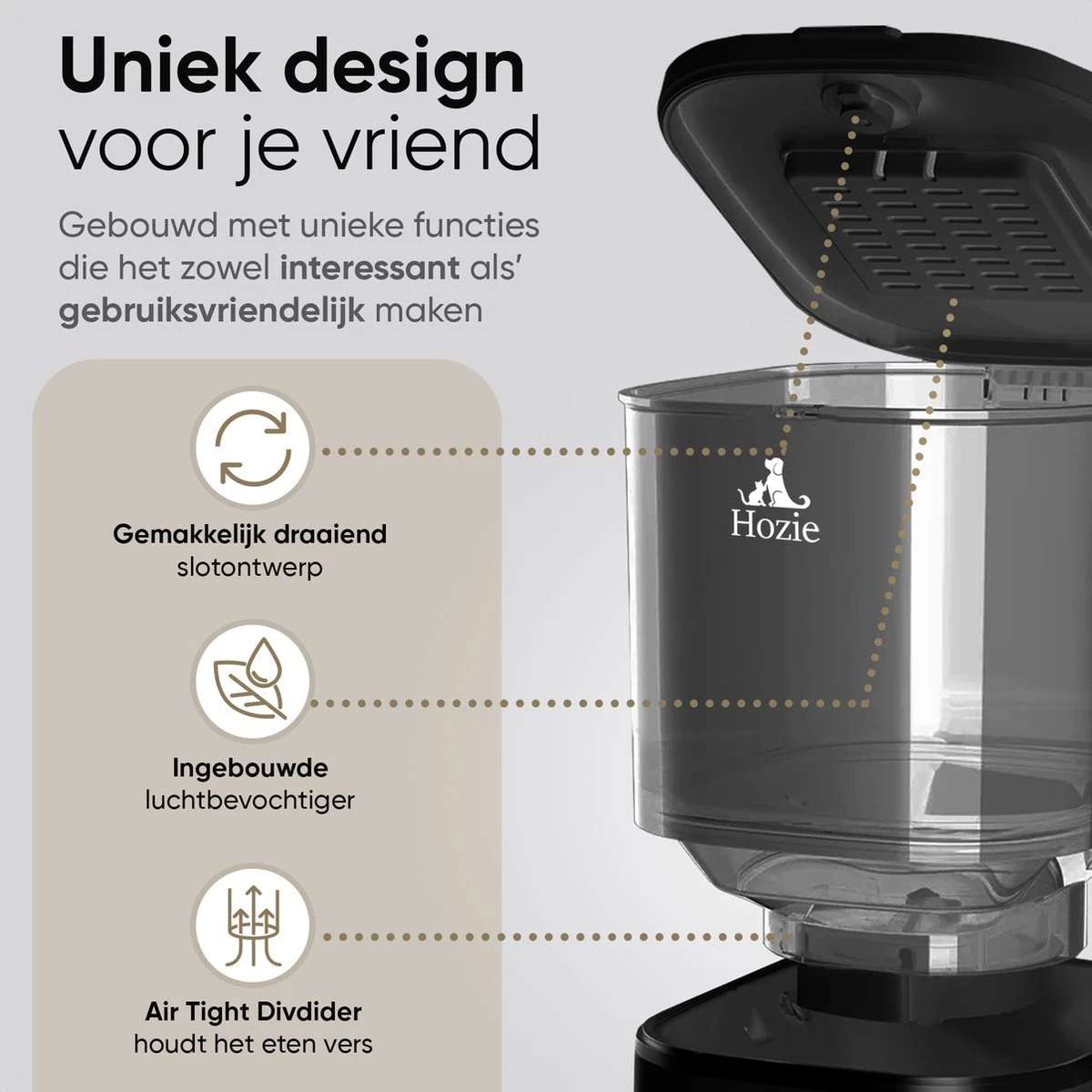 De automatische voerbak van Hozie voor je kat en hond is gemakkelijk te bedienen. Bovendien kun je de voerautomaat overal mee naartoe nemen. Je voert je hond en/of kat waar en wanneer je het maar wilt. Het voedingsreservoir is een aparte bak in het apparaat. Het reservoir kun je er gemakkelijk uithalen om de binnenkant schoon te maken. De slimme voerbak bespaard tijd door automatisch porties voor je af te meten en toe te dienen!