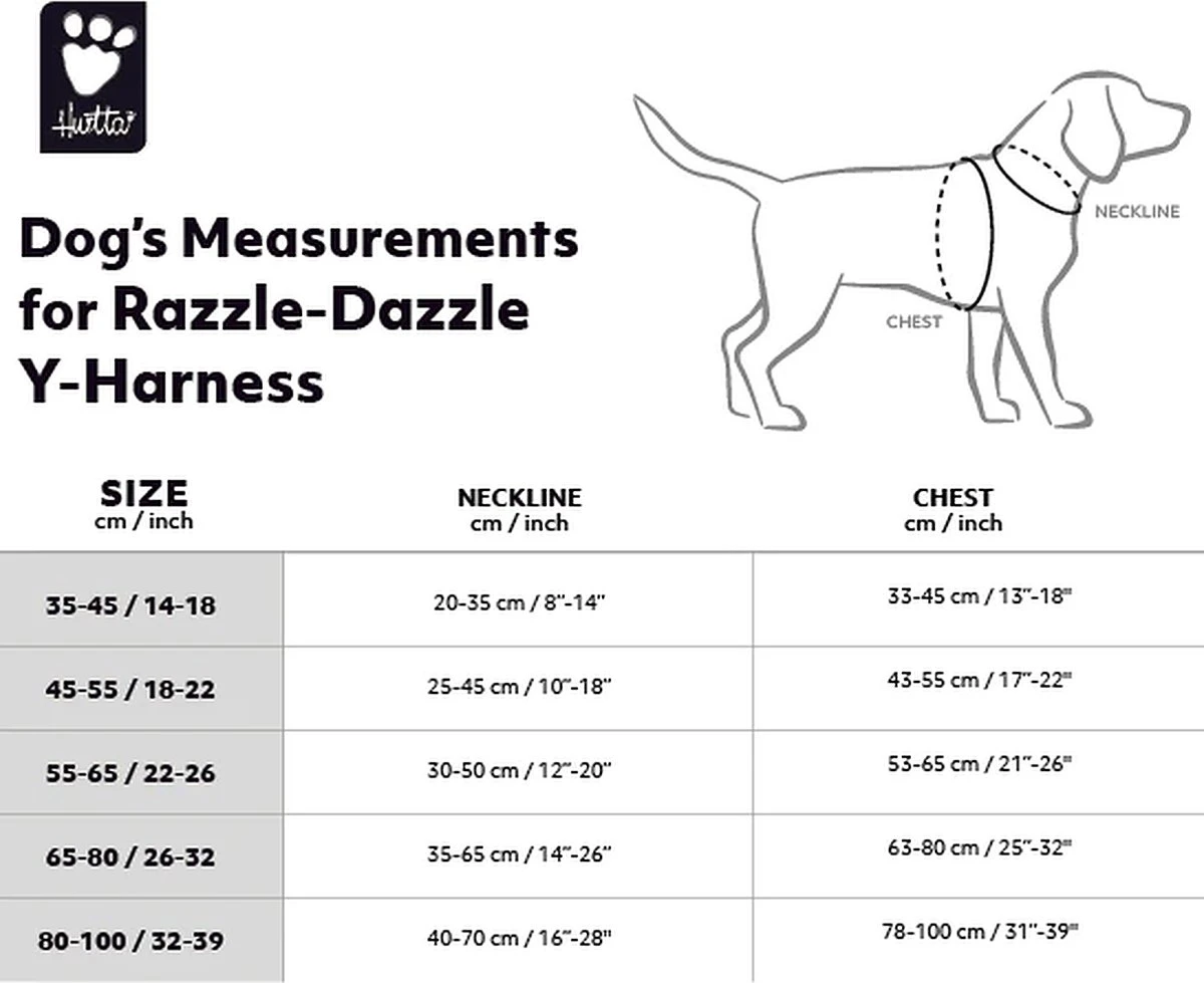Het Hurtta Y-Harness is een verstelbaar Y-tuig gemaakt van weerbestendig materiaal. Dit tuig is speciaal ontworpen met een uitstekende pasvorm, omdat het zowel de borst-, nek en buik kan worden versteld. Dit fungeert ideaal voor honden die aan het groeien zijn . Het tuig is voorzien van een handvat op de rug voor extra veiligheid en controle. Ook is er een ring op de rugzijde bevestigd om de hond aan te lijnen. Het tuig is voorzien van een zachte binnezijde, zodat het zorgt voor een bijzonder hoog draagcomfort. Reflecterende elementen zorgen voor een goede zichtbaarheid tijdens de donkere wandeling. Het meegeleverde reflecterende figuur, is op iedere gewenste plek op het tuig te bevestigen voor een extra stukje reflectie en veiligheid.