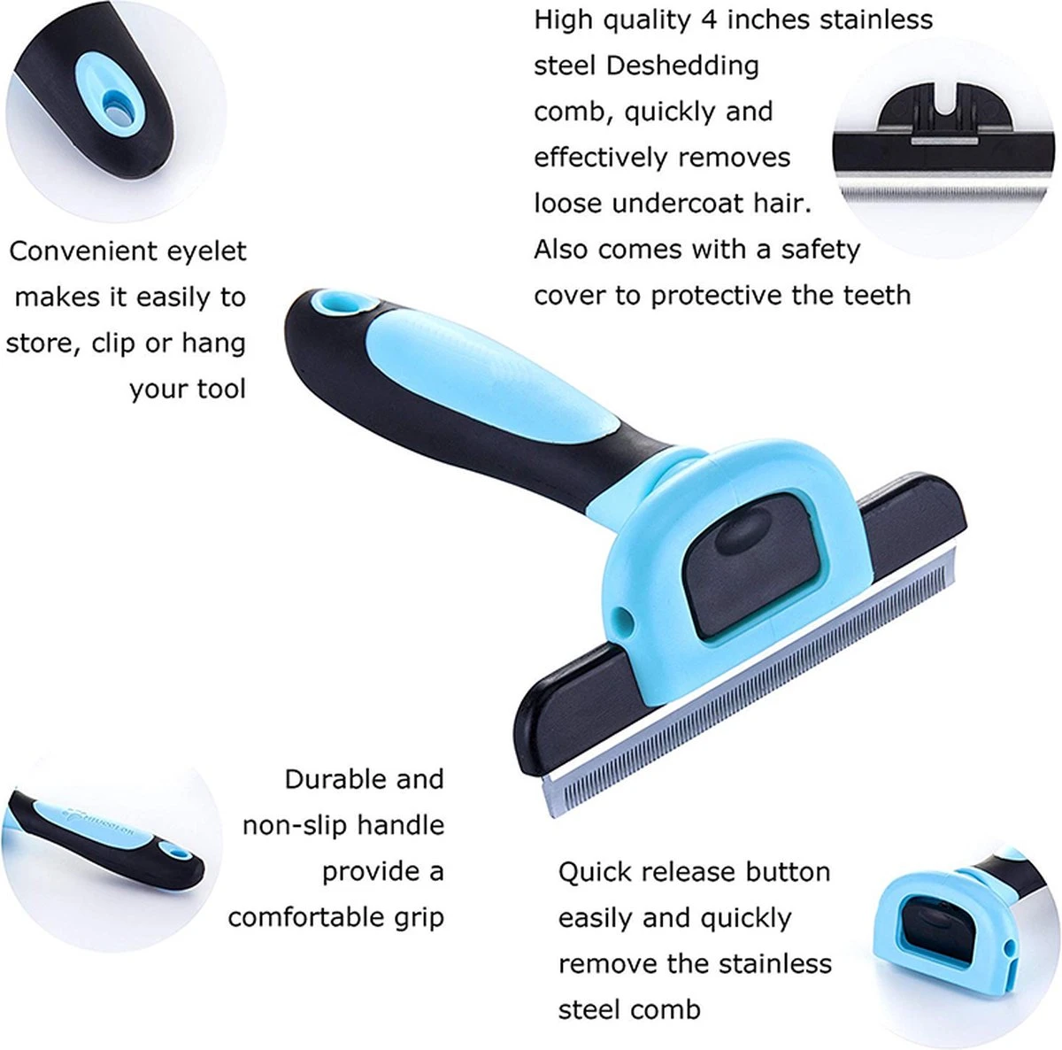 De blade vermindert vergieten tot 90% door het verwijderen van de losse, dode, tiny ondervacht zonder beschadiging van de toplaag van uw huisdier.
