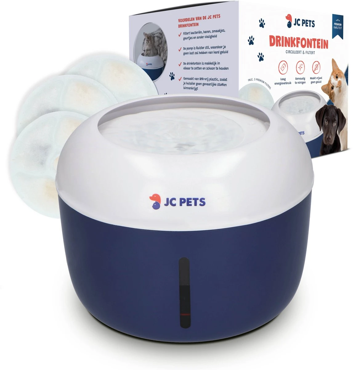 Drinkt je huisdier niet genoeg water? Met de JC Pets premium drinkfontein hoef jij je geen zorgen meer te maken. Deze fluisterstille waterfontein houdt het drinkwater schoon, stimuleert het drinken en biedt jouw kat of hond de allerbeste verzorging.
