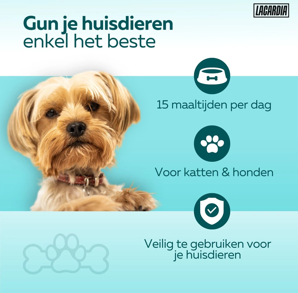Je hond of kat zal altijd kunnen eten met deze LaCardia automatische voerbak! Geef je hond of kat eten vanaf kantoor of als je een nachtje bij vrienden slaapt. Perfect voor mensen die vaak van huis zijn of weleens vergeten hun huisdier eten te geven. Tevens is hij ook handmatig te besturen. Hij bezit over een inhoud van 6 liter.