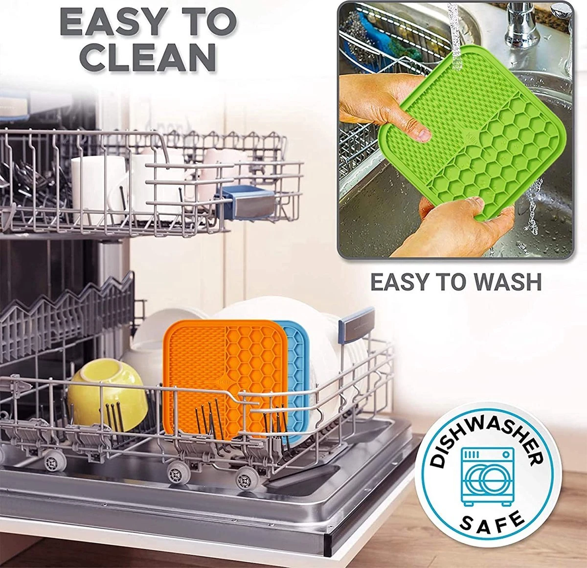 De likmat is diepvriesbestendig, vaatwasmachinebestendig en gemakkelijk schoon te maken. HOUD ALTIJD TOEZICHT OP UW HUISDIER TIJDENS HET GEBRUIK, DIT IS GEEN KAUWSPEELGOED.