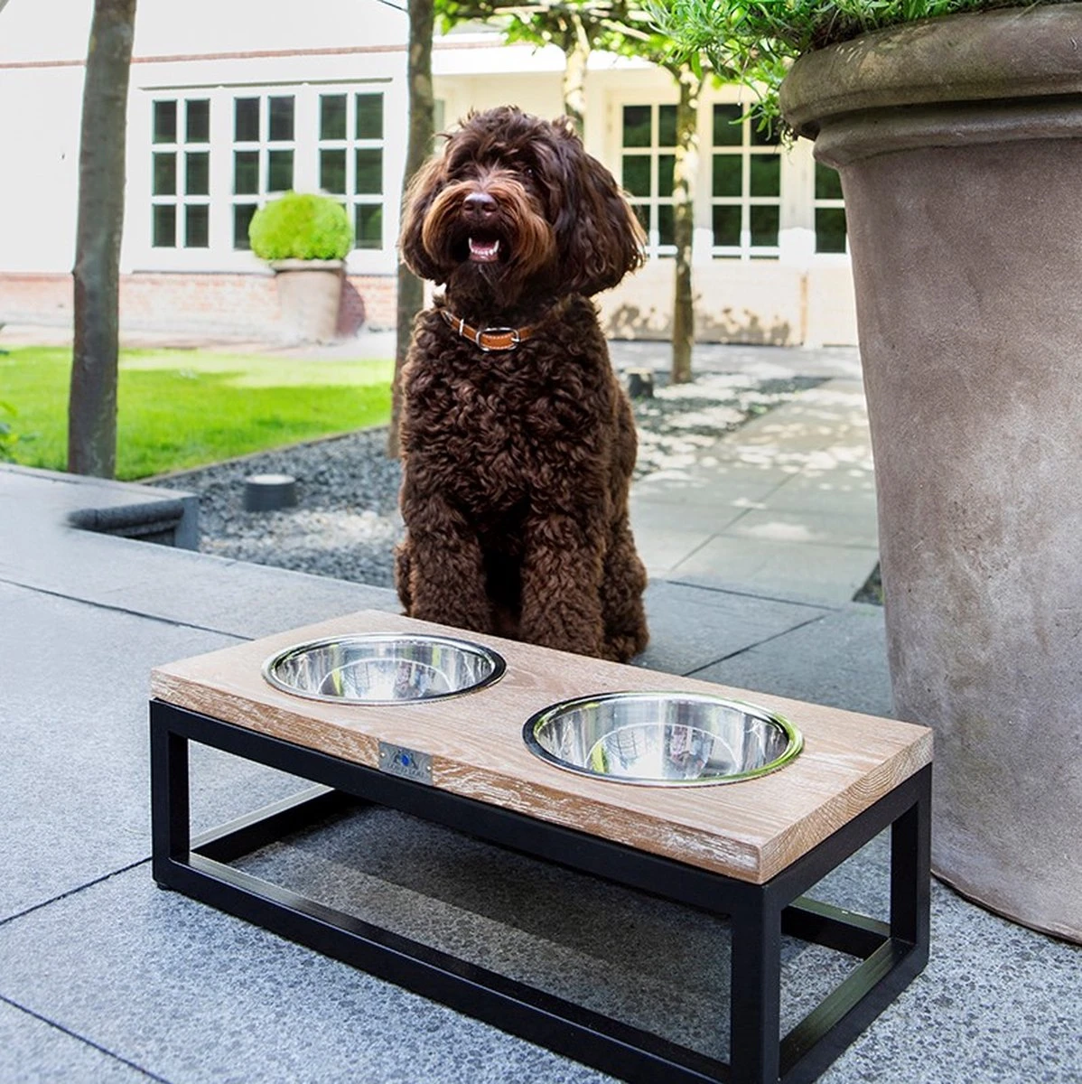 De combinatie van het eikenhouten frame met de kommetjes maken het design van deze voerbak tijdloos en modern. En niet alleen vanwege zijn design, maar juist ook door de hoge kwaliteit van de materialen. De luxe roestvrijstalen bakjes rusten in een stevig houten frame en zijn bovendien vaatwasserbestendig. Kortom, tijdloos design van ijzersterke kwaliteit.
