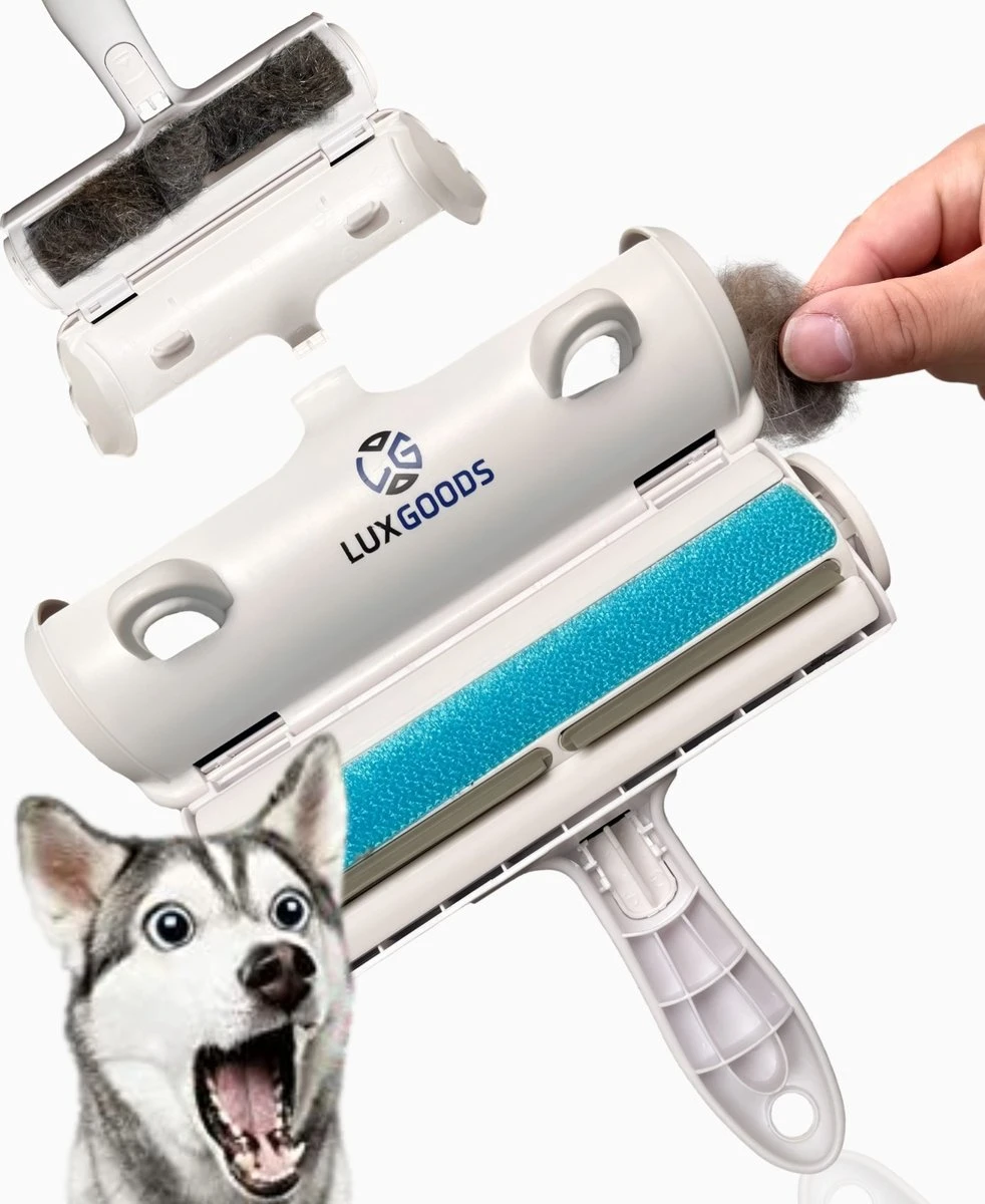 Deze blauwe borstel verwijdert moeiteloos huisdierenhaar van meubels, het tapijt, dekens en dekbedden. De Luxgoods huisdierhaar borstel heeft een stevige ABS-behuizing. Het gaat daardoor lang mee. Je rolt met de borstel op een korte, snelle wijze om het huisdierhaar van het oppervlak te verwijderen. Het haar wordt opgevangen in een stofreservoir. Dat reservoir dient uiteraard te worden geleegd na gebruik. De luxgoods borstel kan worden gebruikt voor het verwijderen van de haren van onder andere honden, katten, konijnen, hamsters en andere huisdieren.