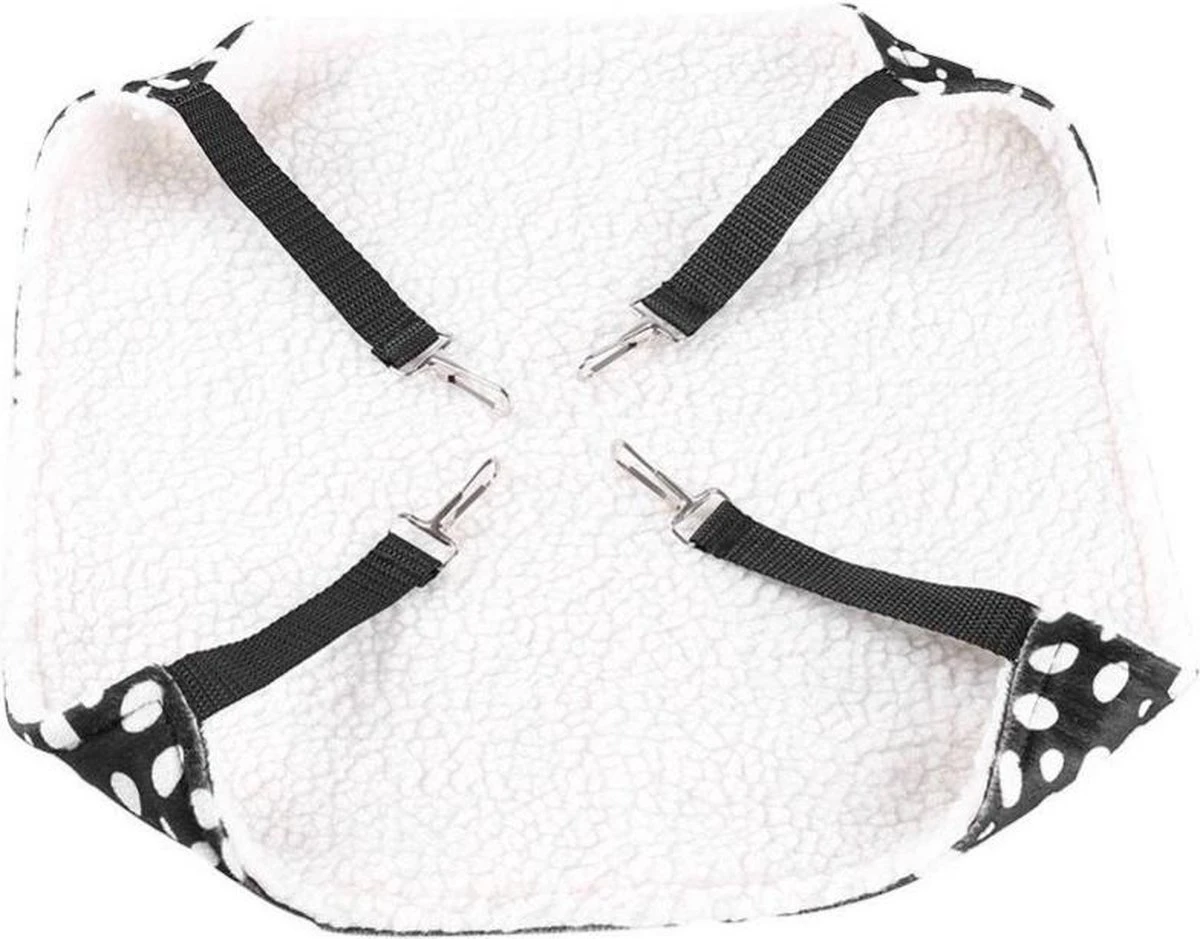 Deze leuke hangmat van is geschikt voor knaagdieren zoals hamsters, ratten, cavia’s en chinchillas, maar ook geschikt voor kleine (katten) De hangmat is bekleed met een zacht fleece laagje. Uw huisdier heeft hebben hierdoor een lekker warm bedje om in de slapen! De hangmat kan eenvoudig in de kooi worden opgehangen dankzij het praktische en stevige ophangsysteem met 4 nylon straps met RVS haken.