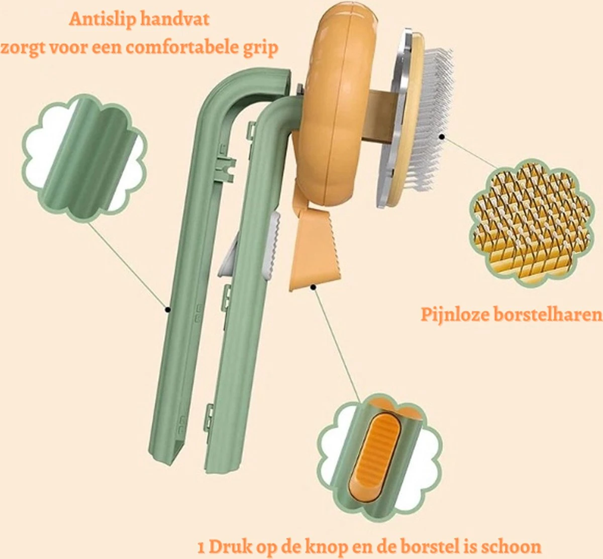 De borstel is volkomen veilig voor het dier en de fijne naalden maken de behandeling tot een aangename massage! De naalden kammen voorzichtig klitten uit, verwijderen vuil en halen het overtollige haar weg. Hierdoor zal deze Pompoen Kattenborstel de enige nodige tool zijn om het haar van uw viervoeter compleet te verzorgen!