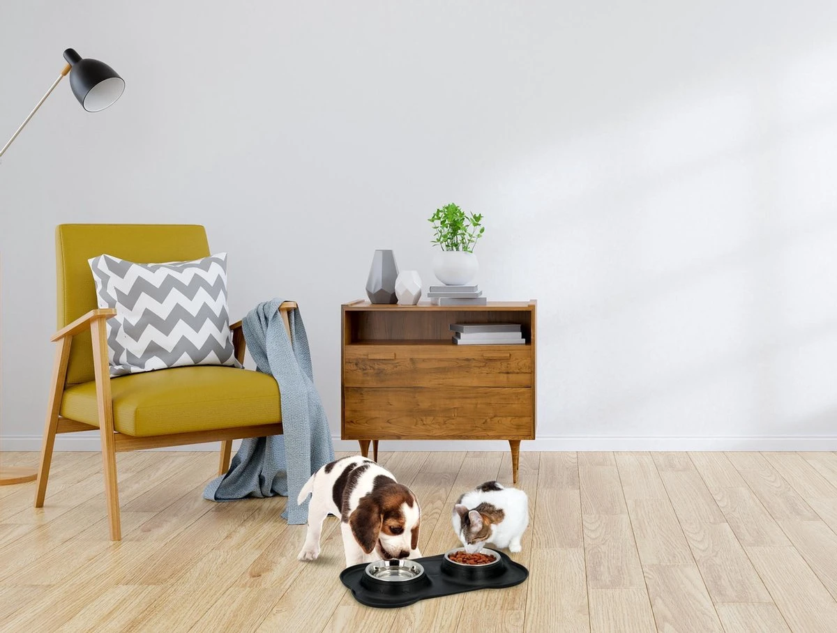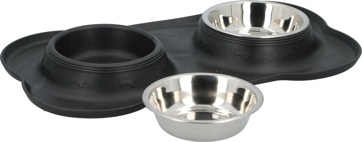 Het plateau heeft 2 uitsparingen waar de voerbakken precies in passen. Het geheel is volledig knoeibestendig omdat uw huisdier de voerbakken niet kan omstoten omdat ze in de onderzetter staan. De onderzetter is gemaakt van kunststof die u gewoon onder stromend water kunt afspoelen. Je kunt de bakjes gemakkelijk in het bakje zetten en er weer uithalen.
