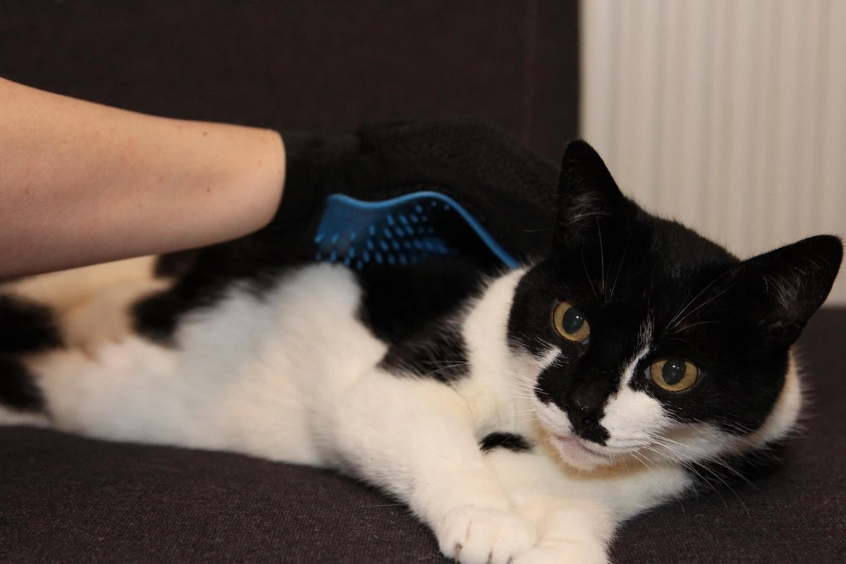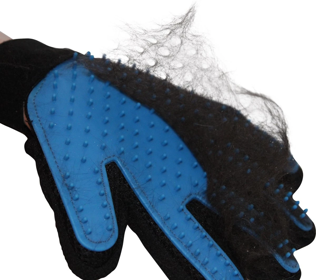 De borstel handschoen is geschikt voor alle vacht types; van honden, katten, konijnen en zelfs voor paarden.