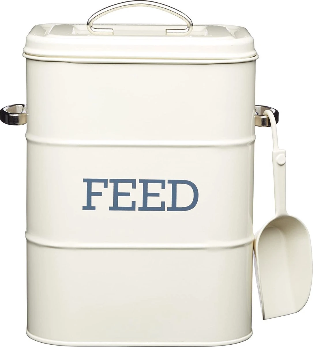 - Vintage opbergoplossing: robuuste opbergdoos voor dierenvoer van staal met mooie poedercoating in antieke crème is niet alleen praktisch maar ook nog mooi om te zien