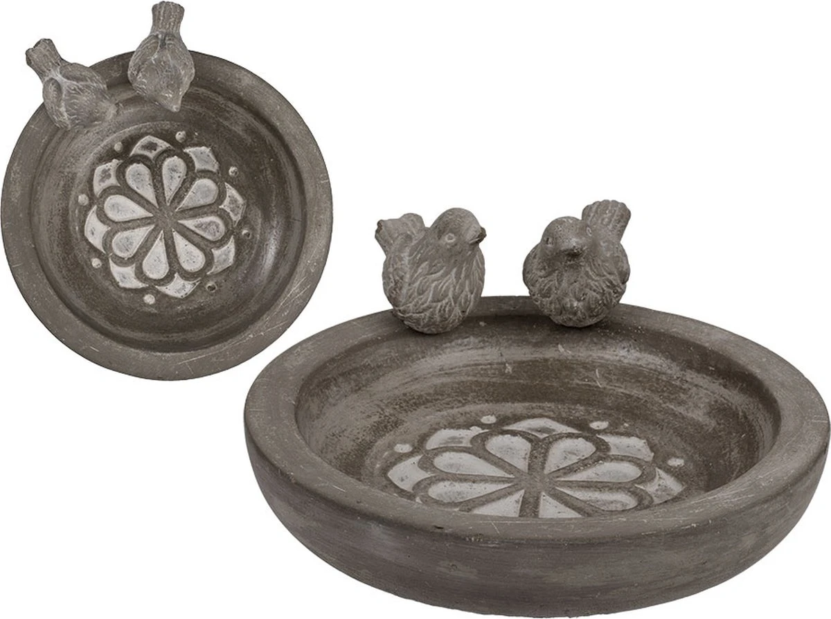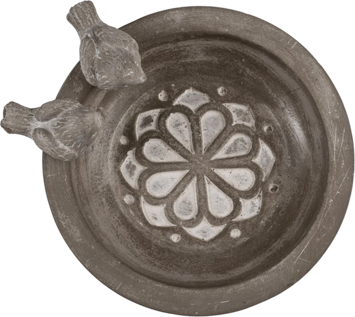 Merkloos Vogelbad Grijs Met 2 Vogeltjes Vogel Voederschaal Ø20cmx4cm