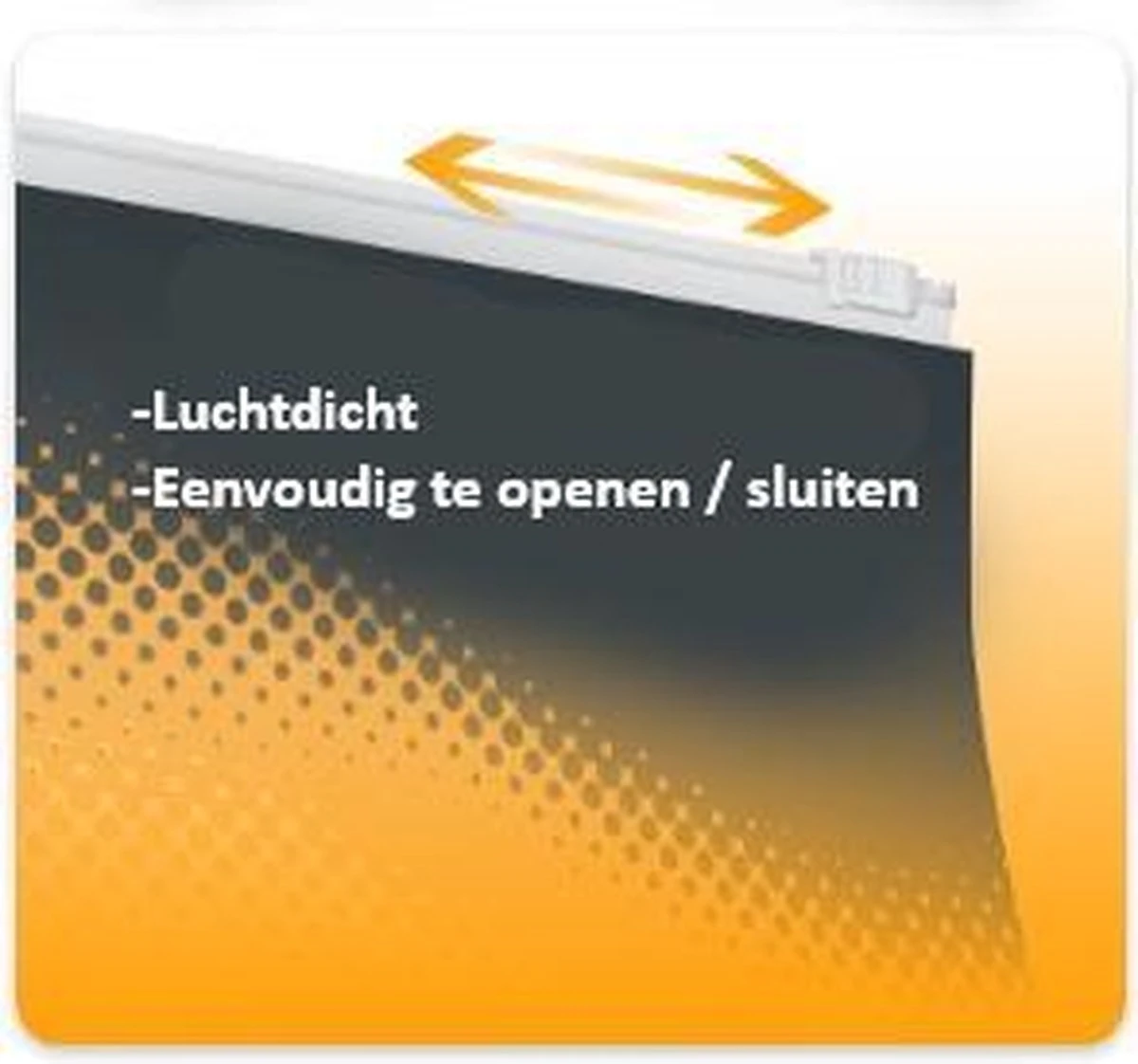 Nadat u het voedsel uit de verpakking hebt gehaald, kunt u de rits sluiten zodat de lucht uit de verpakking verwijderd wordt om de versheid van het voedsel langer te behouden.