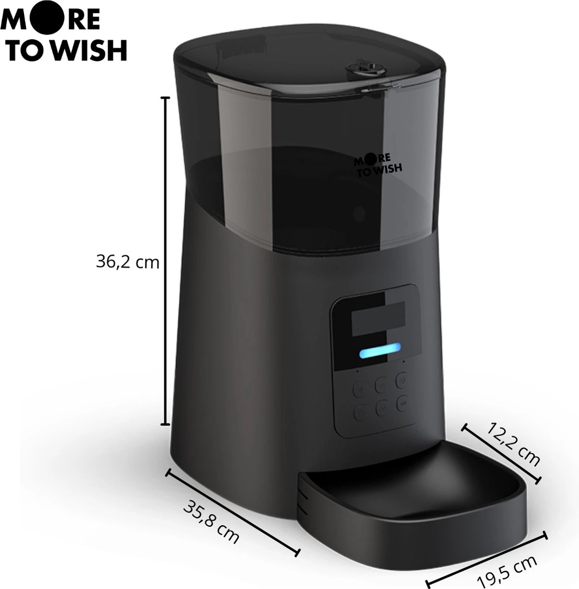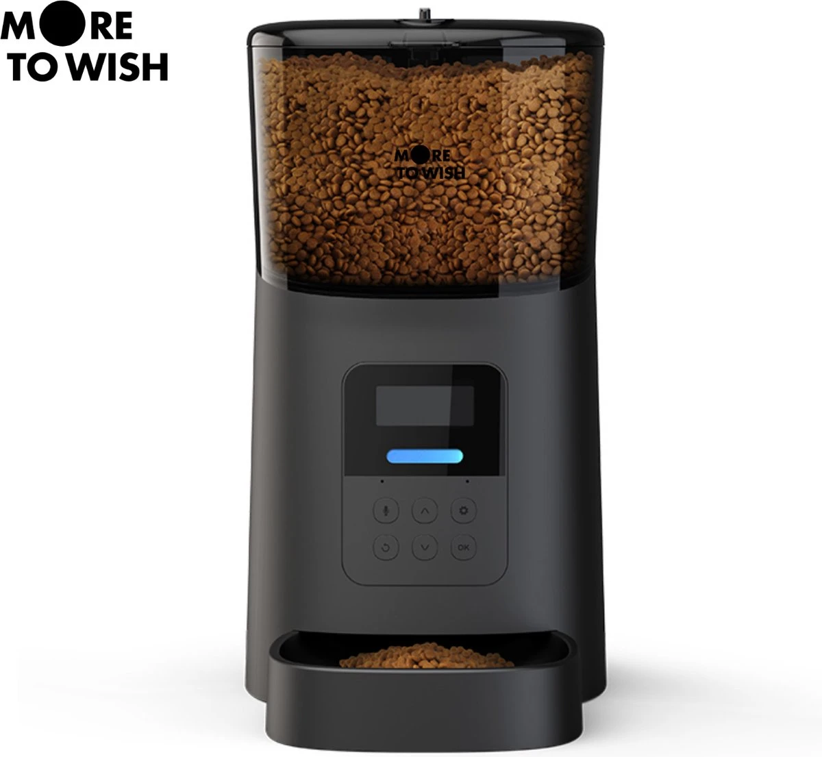Met de More To Wish automatische voerbak is het nadenken over wanneer je jouw hond of kat eten hoeft te geven verleden tijd! De voerautomaat maakt het gemakkelijk om tot maximaal zes maaltijden per dag in te plannen op de door jou gewenste tijdstippen. Met de voerdispenser is het verder mogelijk om zelf te bepalen hoeveel porties er per maaltijd worden gegeven.