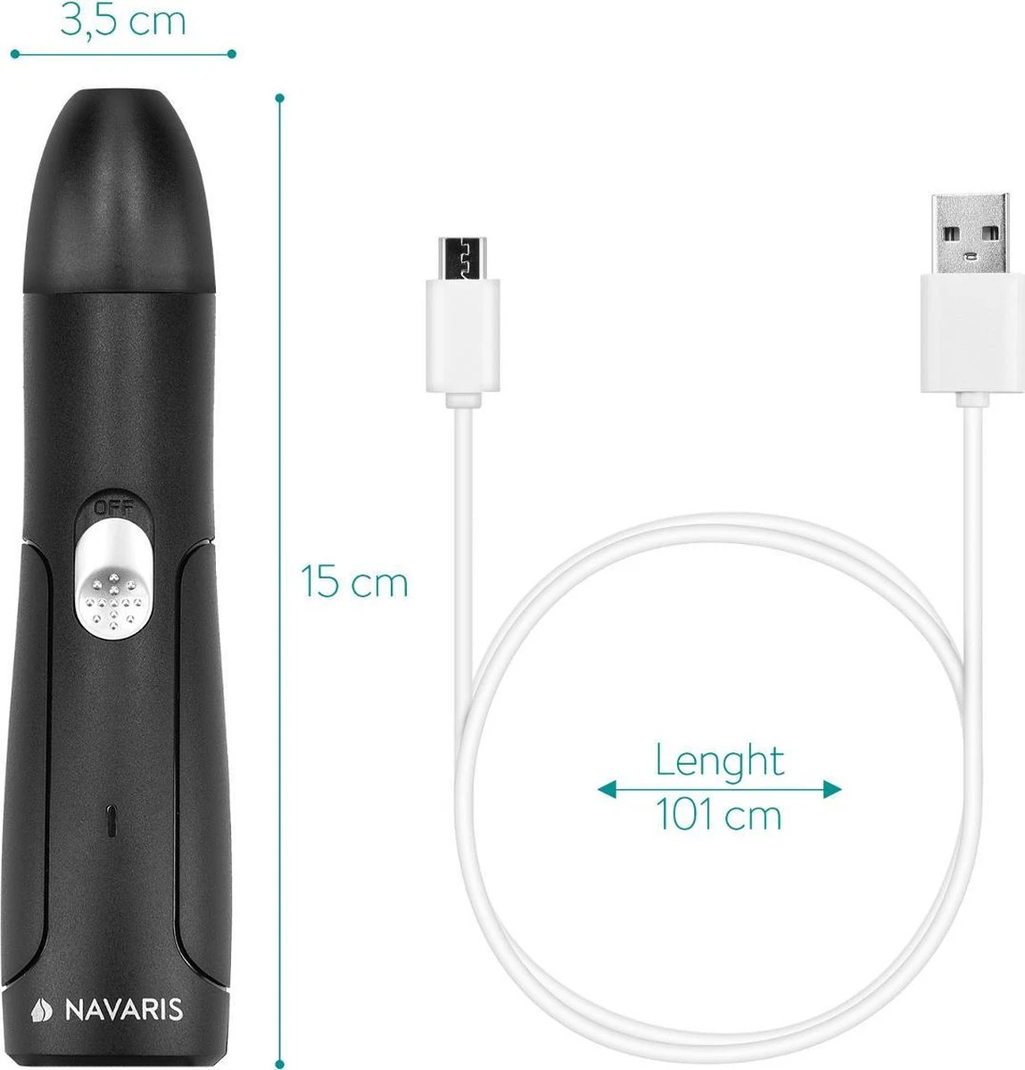 - MANI-PEDI: Verzorg thuis zelf de nagels van je huisdier met de zwarte Navaris elektrische nagel schuurmachine voor huisdieren. Dat scheelt weer een reisje naar de dierensalon! Deze tool biedt een veilig en effectief alternatief voor knippen.