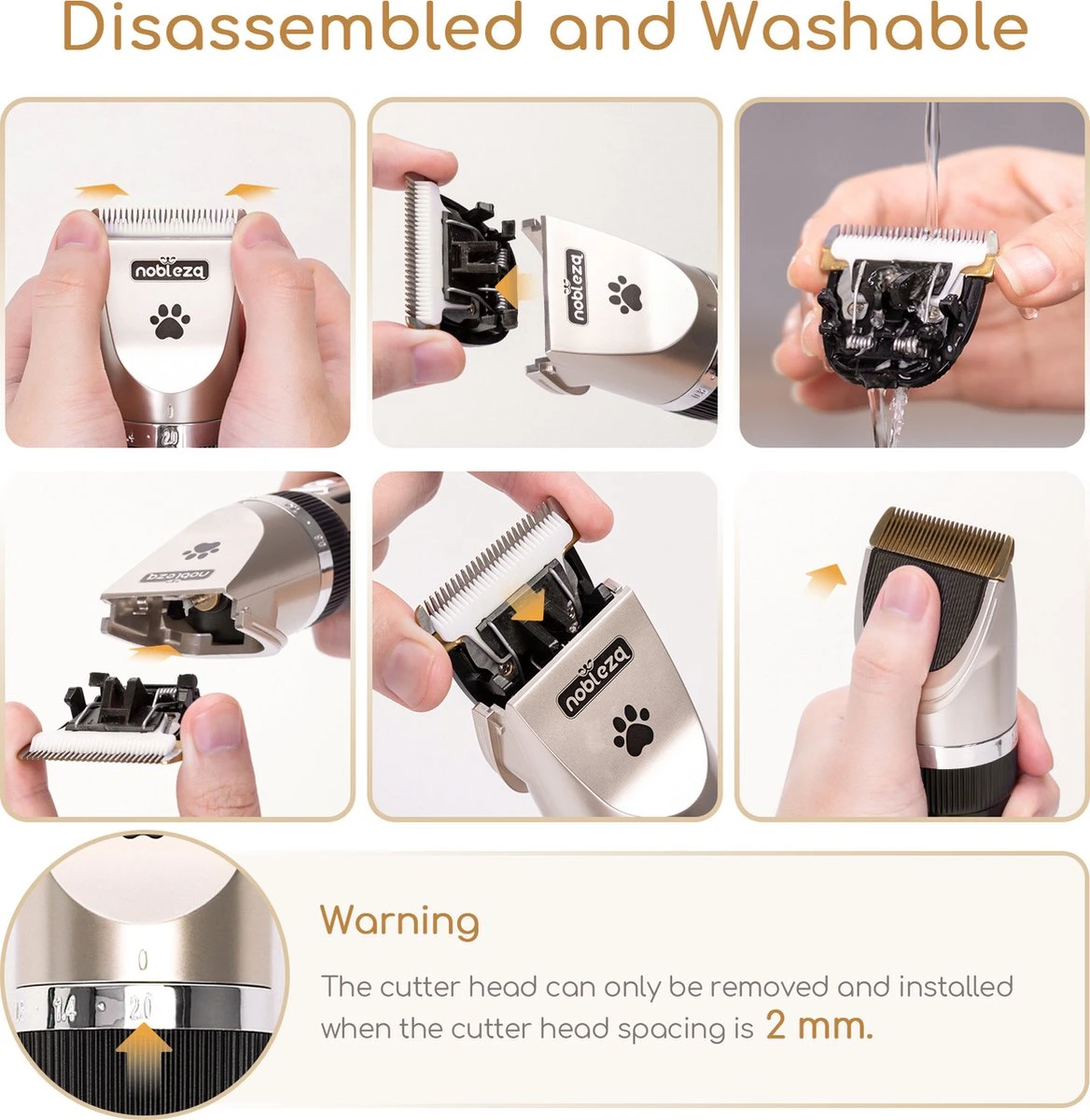 VERSTELBARE POSITIES – Met fijn regelwiel, het heeft 5 verstelbare hoogtes (0.8mm-2.2mm) en uitgerust met 4 geleidingskammen (3mm/6mm/9mm/12mm) met verschillende lengtes. Geschikt voor huisdieren van verschillende haartypes.