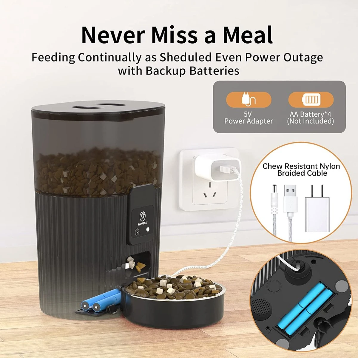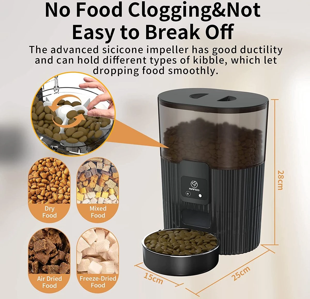Met onze automatische kattenvoeder hoeft u zich geen zorgen meer te maken over het voeden van uw kat wanneer u weg bent. Programmeren is eenvoudig en de voeder is voorzien van een grote capaciteit voor voer, zodat uw kat altijd genoeg te eten heeft. Dankzij de precieze voermechanisme, kunt u zelfs kleine porties voer geven, perfect voor katten met een gecontroleerd dieet. Probeer het nu en geef uw kat de zorg die hij verdient, zelfs als u er niet bent.