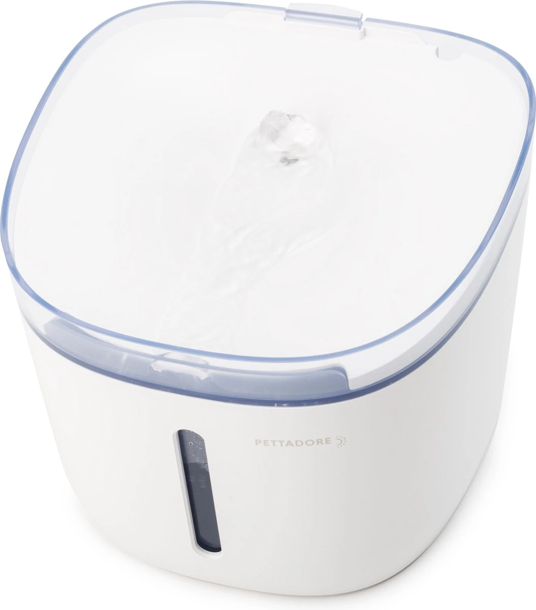 De Pettadore Hydrate Compact drinkfontein bevat een hangende pomp, wat zorgt voor een goede geluidsdemping welke comfort biedt aan jou en je huisdier. De pomp is krachtig en geeft een fijne stroom water recht naar het midden afstromend die katten en honden aantrekkelijk vinden. De kattenfontein heeft een filter met 4 filtermethodes die meegeleverd wordt. Deze filter is van onschadelijk materiaal wat het veilig maakt voor jouw katten en honden.