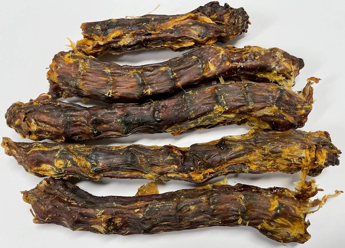 Gedroogde eendennekken (hals) als hondensnack. Deze gewilde 100% natuurlijke vleessnack kun je geven aan je hond als beloning of als tussendoortje. Met uiterste zorg geproduceerd zonder toevoegingen van conserveermiddelen en smaakstoffen. Geschikt voor alle soorten honden en vooral voor honden met specifieke allergieën.
