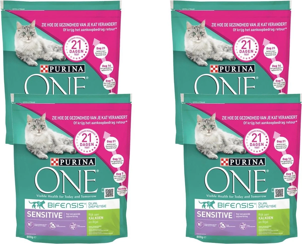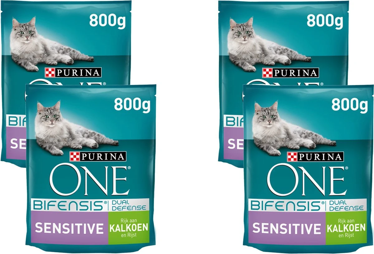 Purina One Sensitive – Kattenvoer – 4 X Kalkoen Rijst 800 G