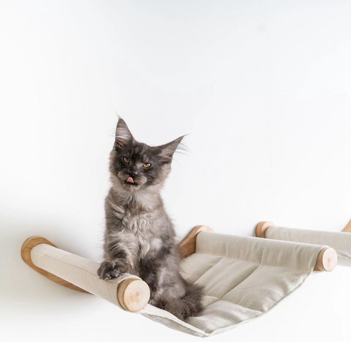 De Wandmeubel en Klimmuur voor grote katten heeft ook luxe XXL Hangmat Crème met wandmontage. Deze hangmat van RHRQuality is zoals bekend enorm sterk en duurzaam. Tevens getest tot een draagkracht van 20KG en daardoor zeer geschikt voor grote en zware katten zoals de Maine Coon of Ragdoll.