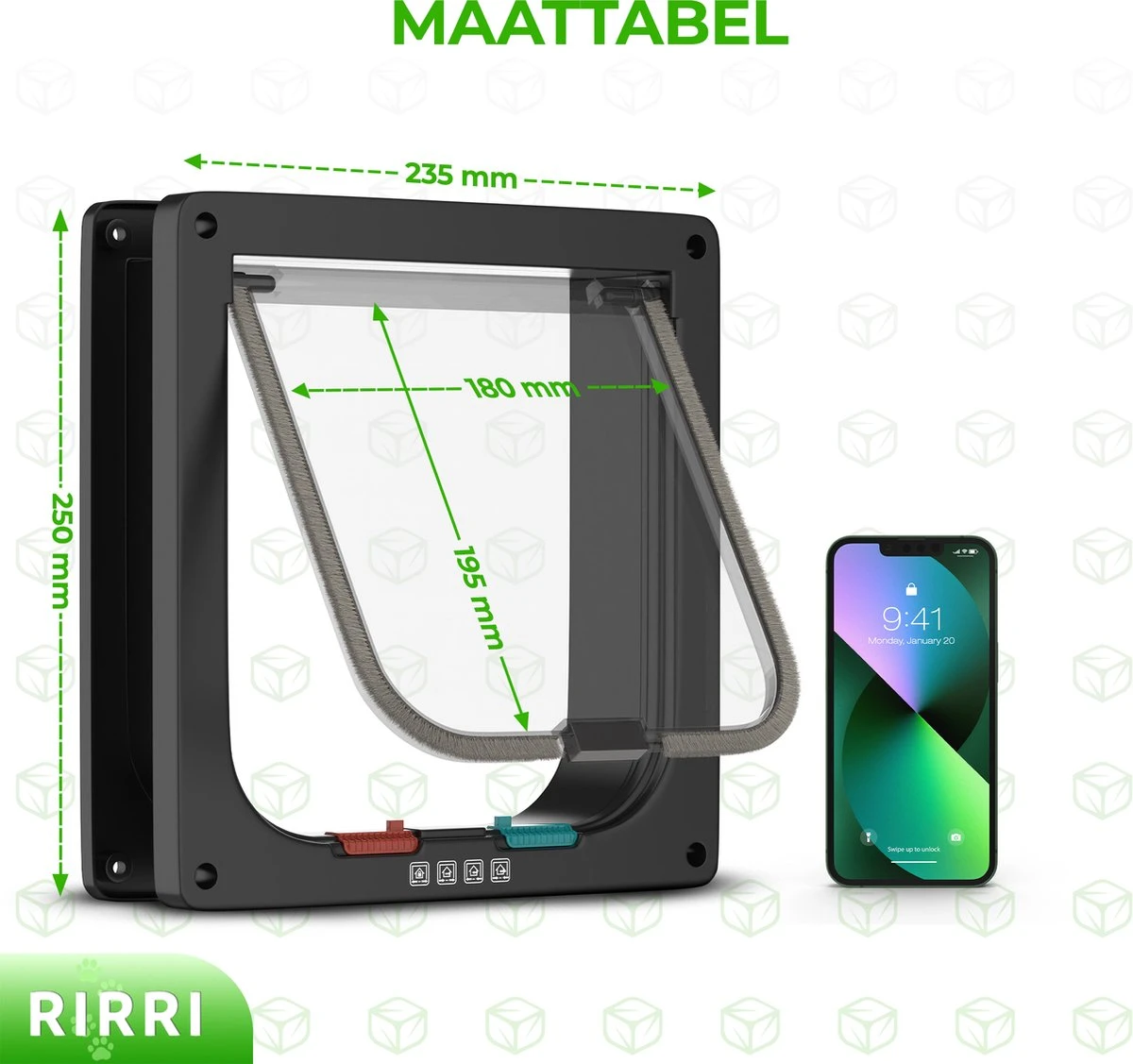 ▶ 4 vergrendeling standen- Houdt je je kat s’avonds liever binnen? Dat kan nu nog gemakkelijker dankzij de 4 vergrendel standen. Zo is helemaal open, alleen naar binnen of alleen naar buiten allemaal mogelijk. Je bepaalt het allemaal zelf!
