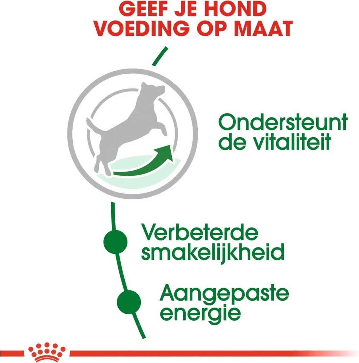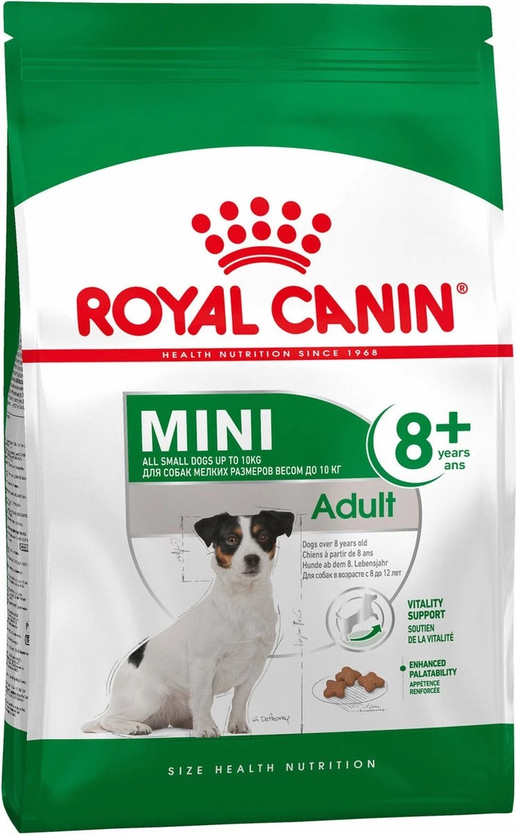 Uitgebalanceerde voeding Je zou denken dat een kleine elegante hond kwetsbaar is. Maar dat valt juist reuze mee. De mini-hond is erg levendig en sterk. Ze kunnen zelfs ouder dan 15 jaar worden. Natuurlijk verandert hun voedingsbehoefte met het klimmen van de jaren wel. Wij adviseren daarom vanaf 8 jaar een aangepaste voeding. Mini Adult 8+ van ROYAL CANIN® is een uitgebalanceerde gezonde voeding. Speciaal om te voldoen aan de veranderde behoefte van je hond.