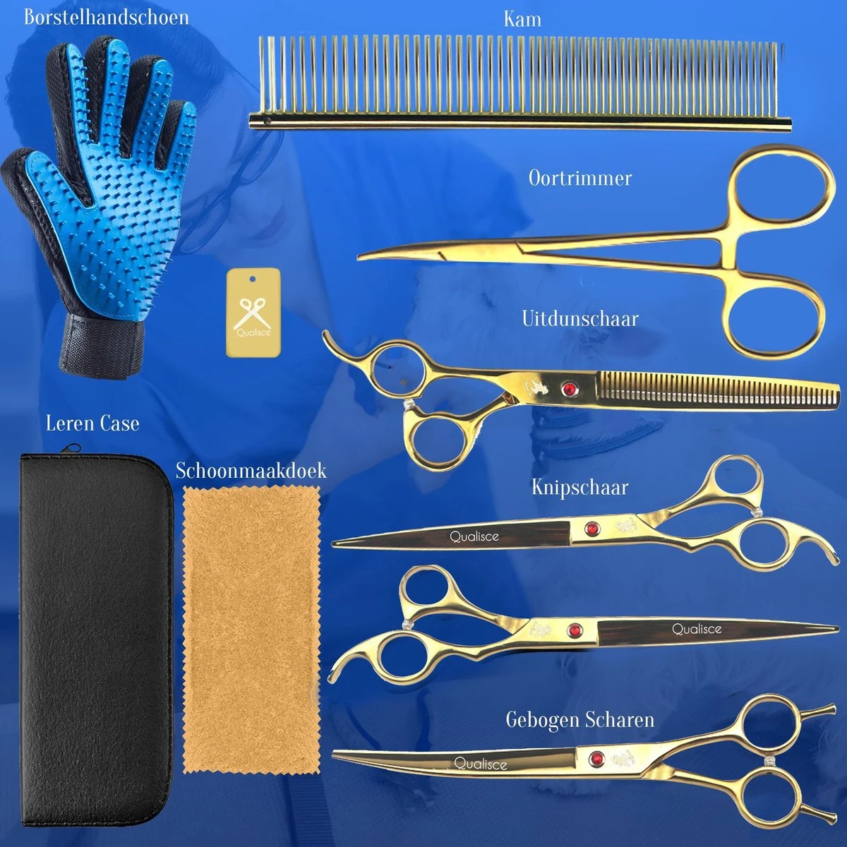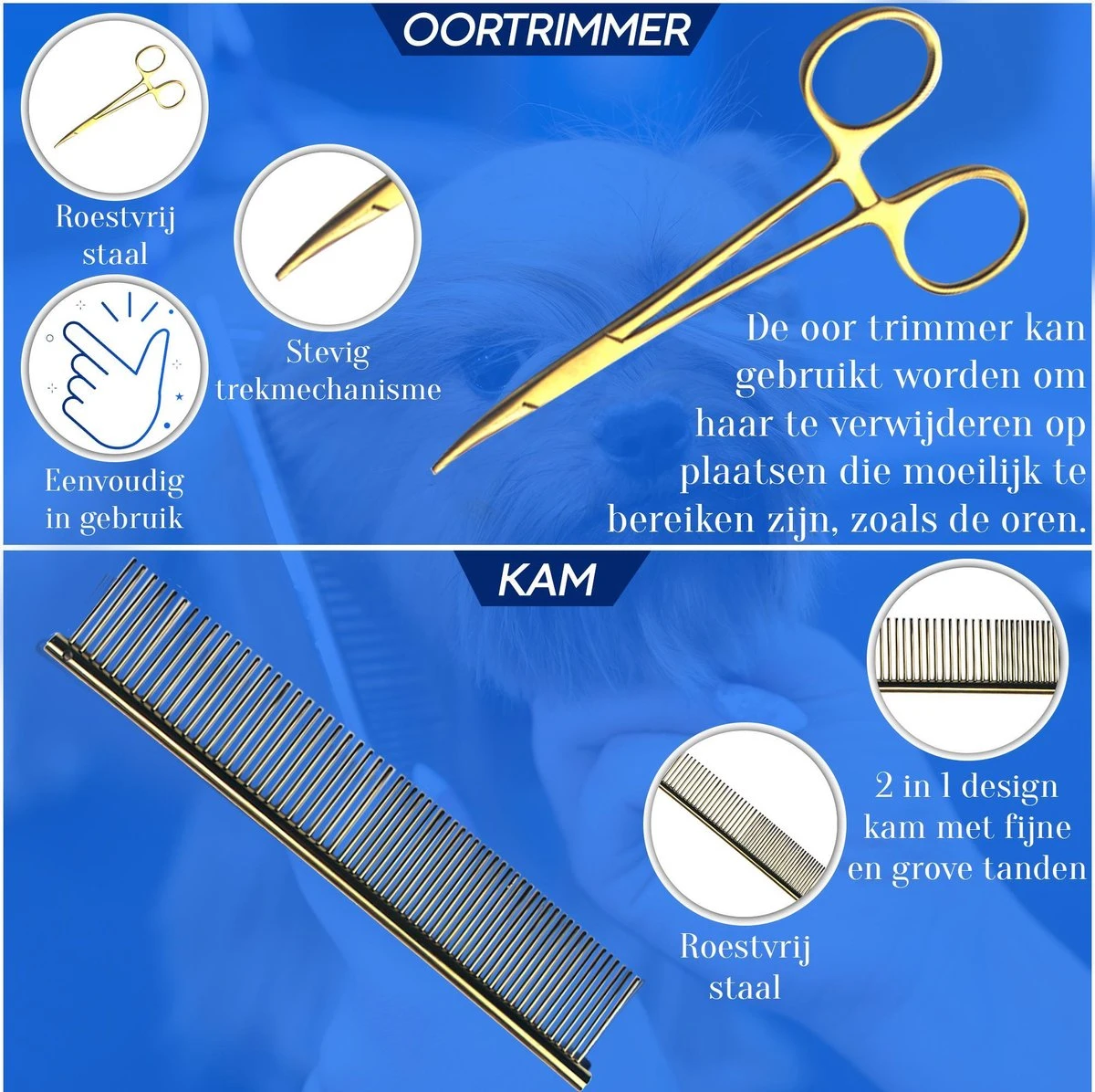 Deze set bevat alle essentiële benodigdheden voor een professionele knip- en trimbeurt voor elke vacht.